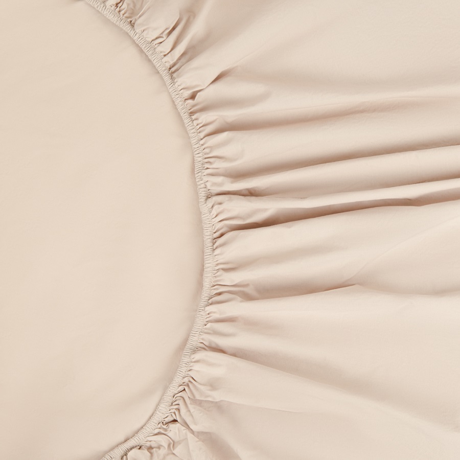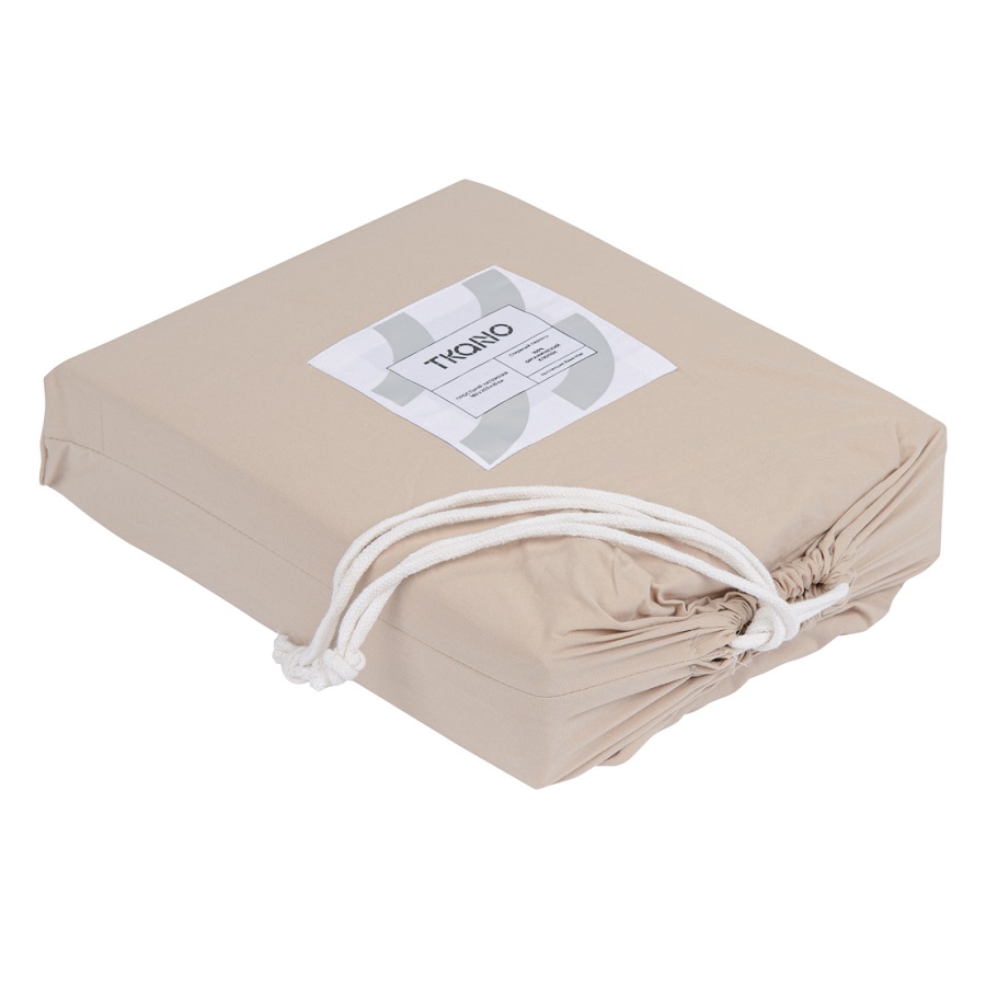 Простыня на резинке бежевого цвета из органического стираного хлопка из коллекции Essential, 180х200 см