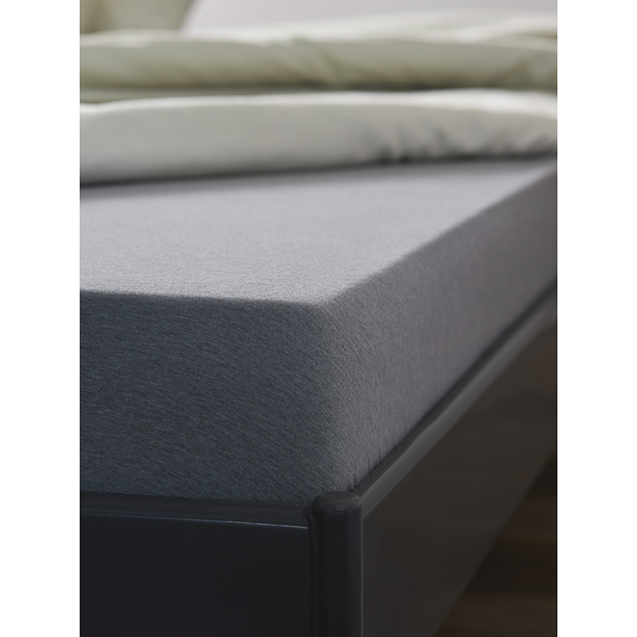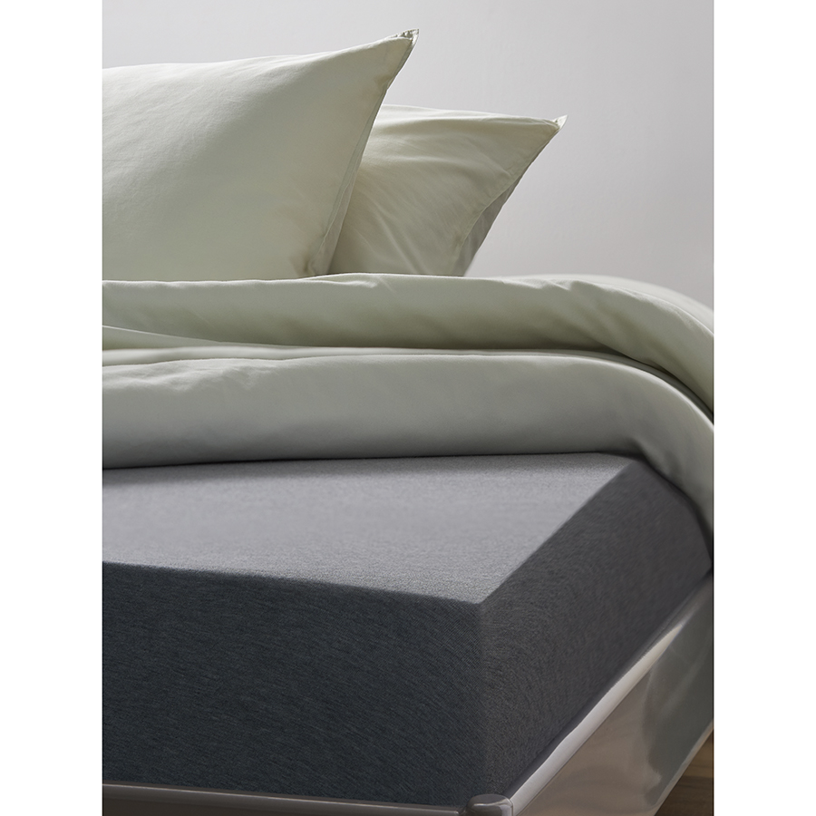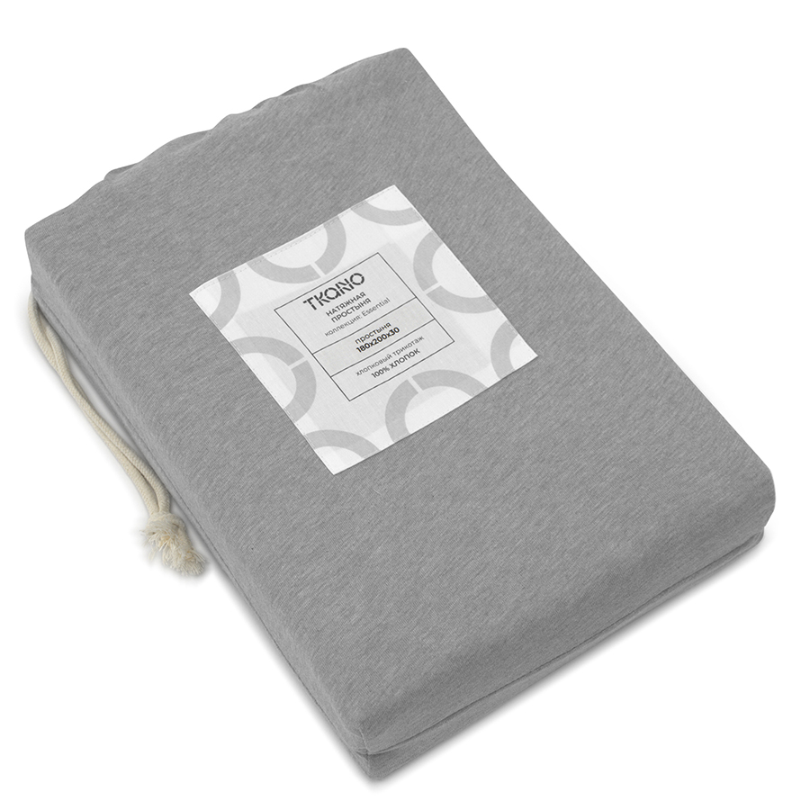 Простыня на резинке из хлопкового трикотажа серого цвета из коллекции Essential, 180х200х30 см, Tkano