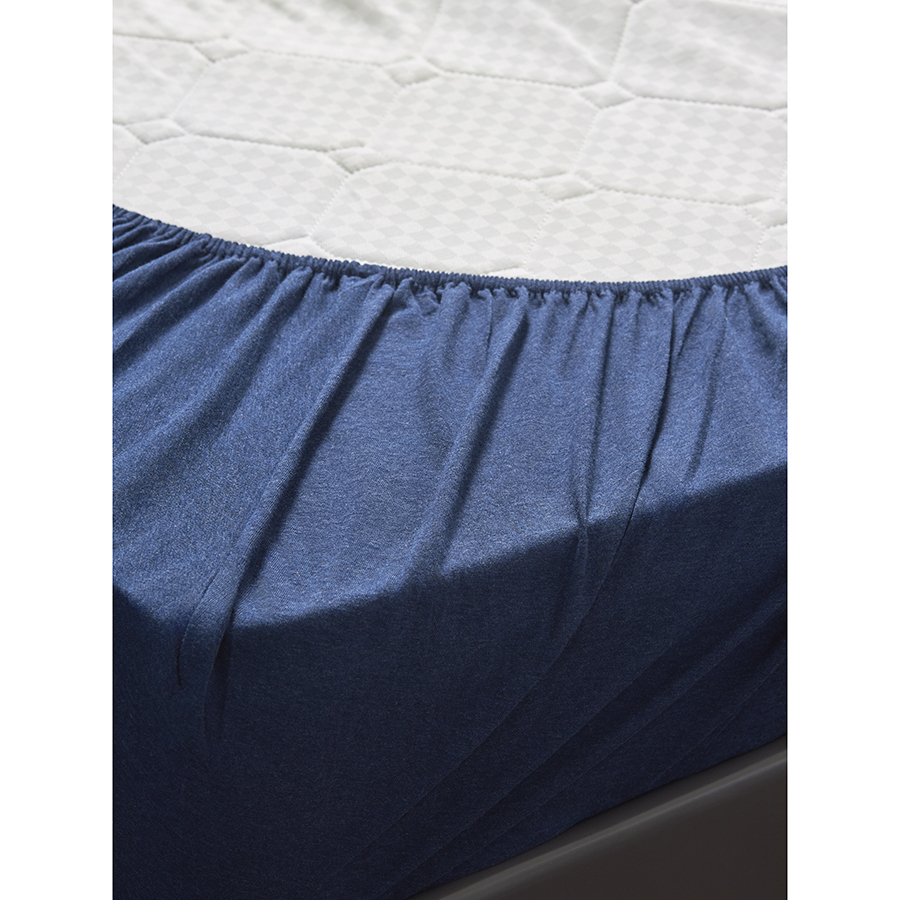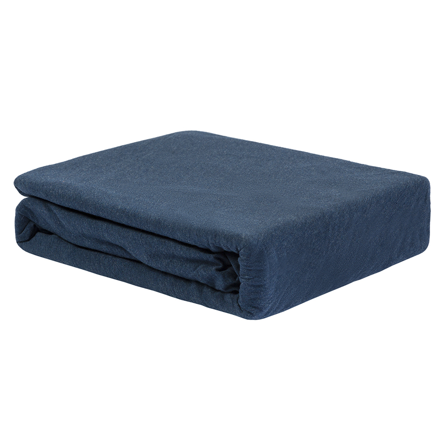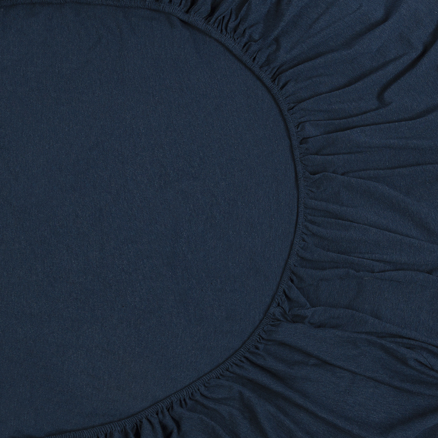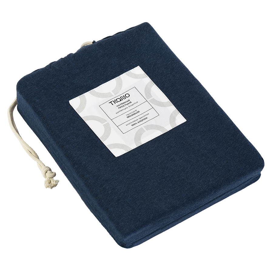 Простыня на резинке из хлопкового трикотажа темно-синего цвета из коллекции Essential, 180х200х30 см, Tkano