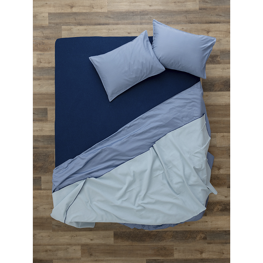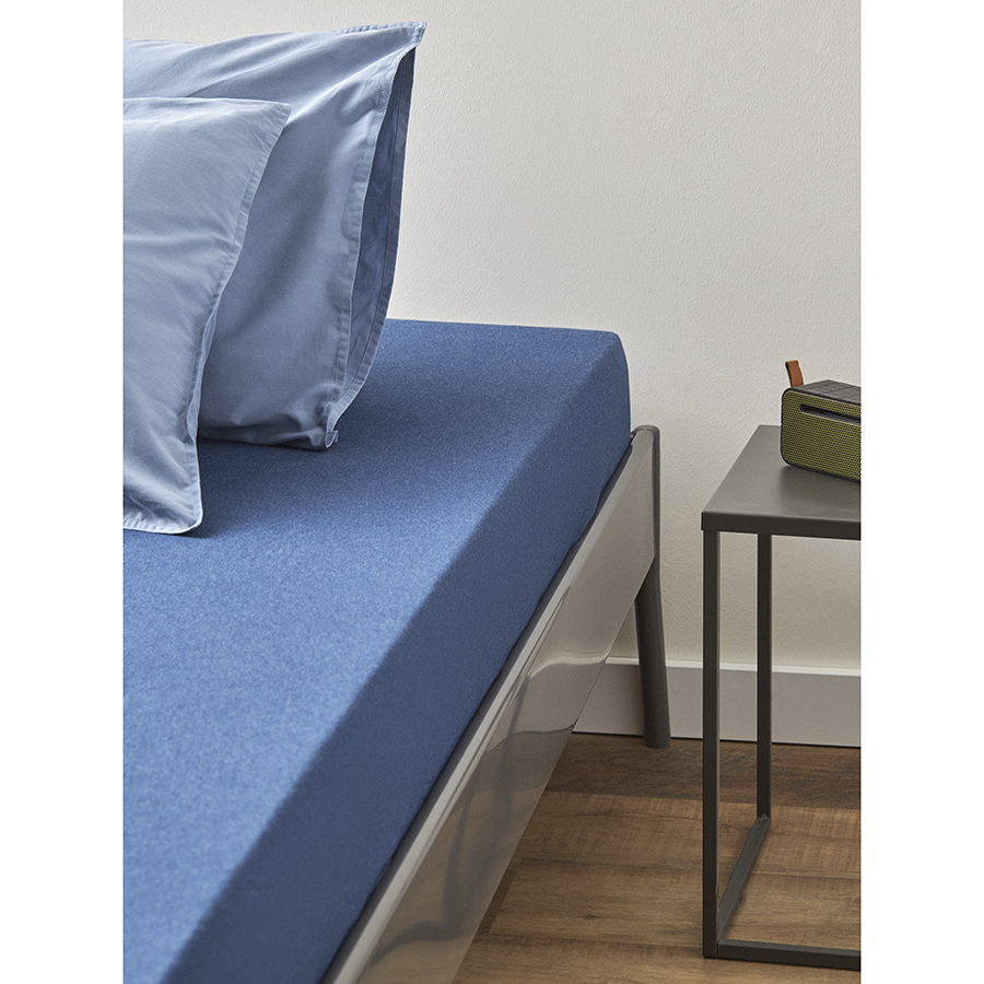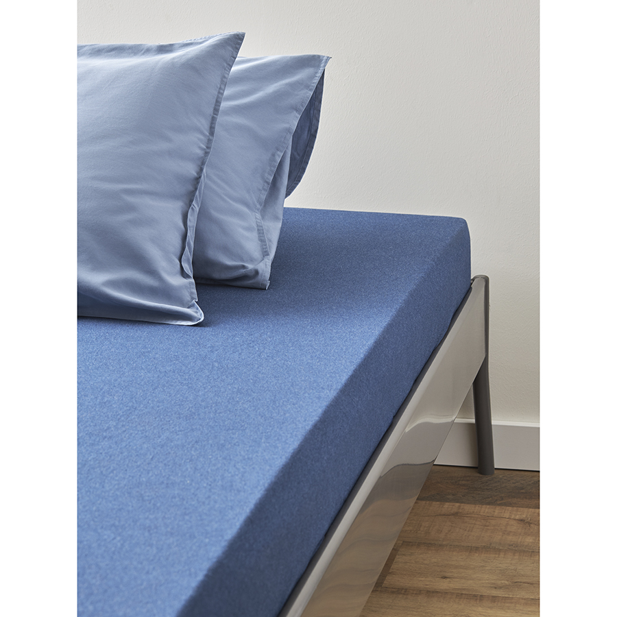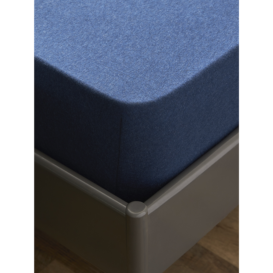 Простыня на резинке из хлопкового трикотажа темно-синего цвета из коллекции Essential, 180х200х30 см, Tkano