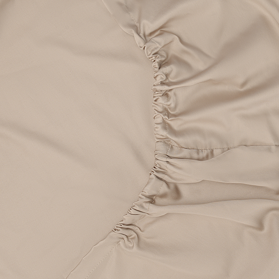 Простыня на резинке из премиального сатина бежевого цвета из коллекции Essential, 180х200х30 см, Tkano