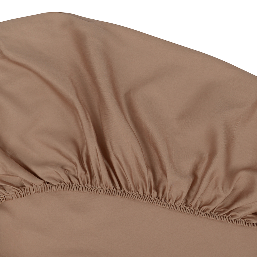 Простыня на резинке из сатина бежевого цвета из египетского хлопка из коллекции Essential, 180х200х28 см