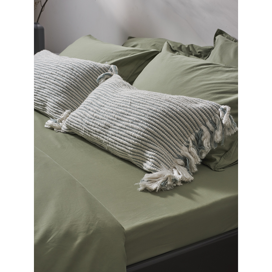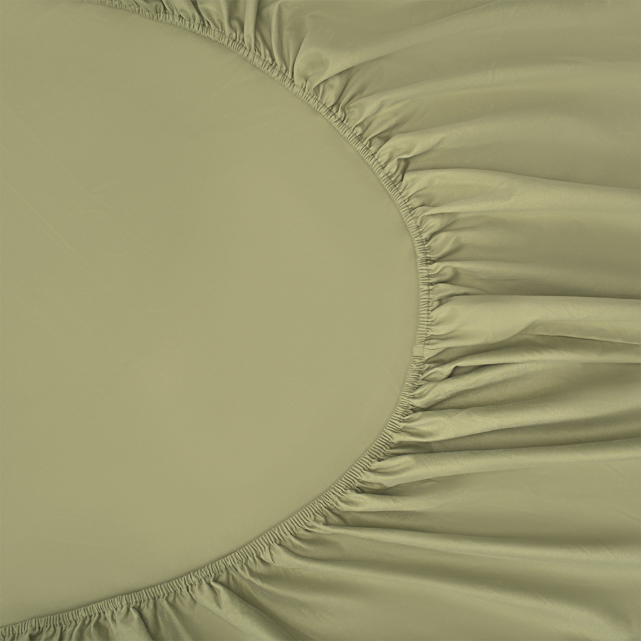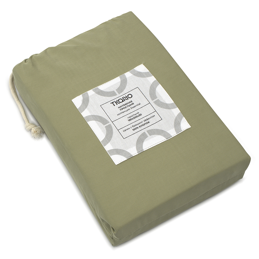 Простыня на резинке из сатина цвета шалфея с брашинг-эффектом из коллекции Essential, 180х200х30 см, Tkano