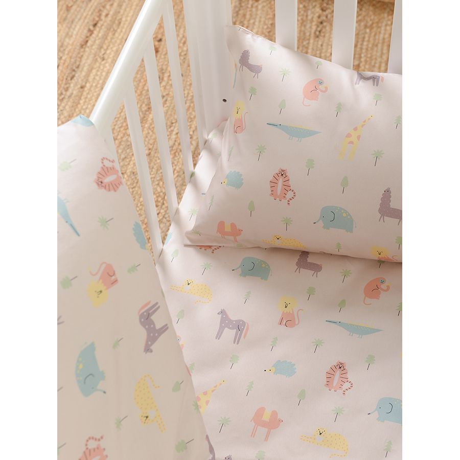 Простыня на резинке из сатина с принтом Animalia world из коллекции Tiny world, 60х120х20 см