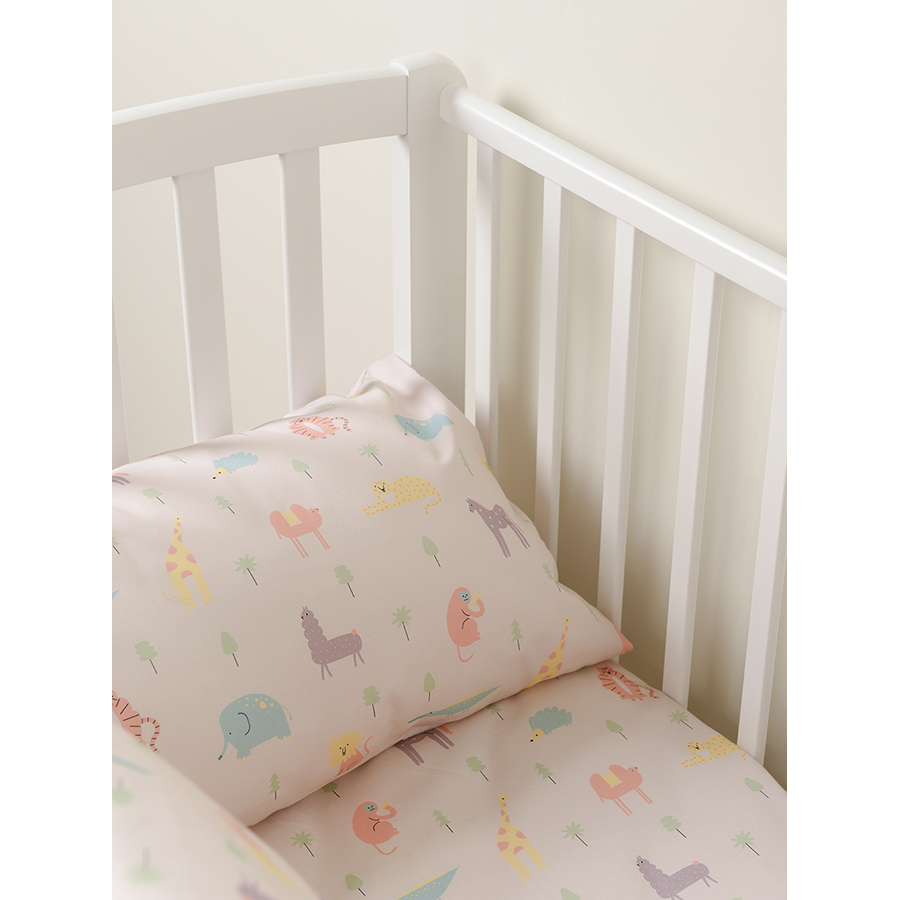 Простыня на резинке из сатина с принтом Animalia world из коллекции Tiny world, 70х140х20 см