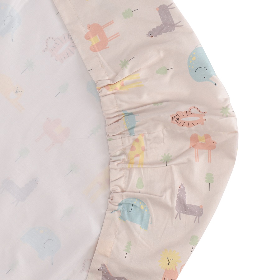 Простыня на резинке из сатина с принтом Animalia world из коллекции Tiny world, 80х160х20 см