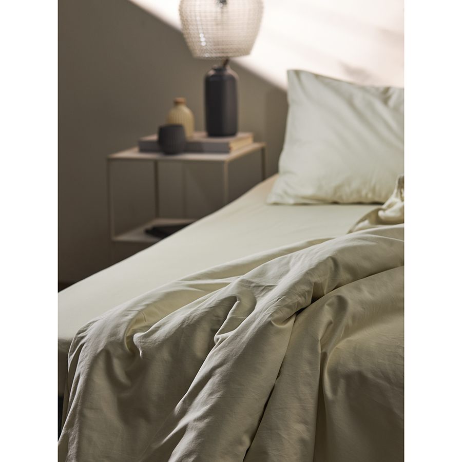 Простыня на резинке из сатина серо-бежевого цвета с брашинг-эффектом из коллекции Essential, 180х200 см, Tkano