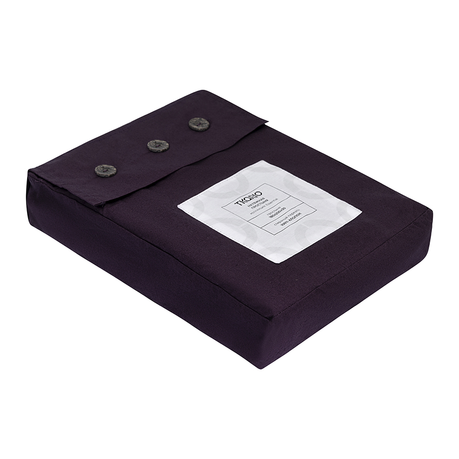 Простыня на резинке из стираного перкаля сливового цвета из коллекции Essential, 180х200х30 см, Tkano