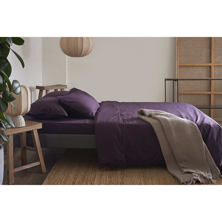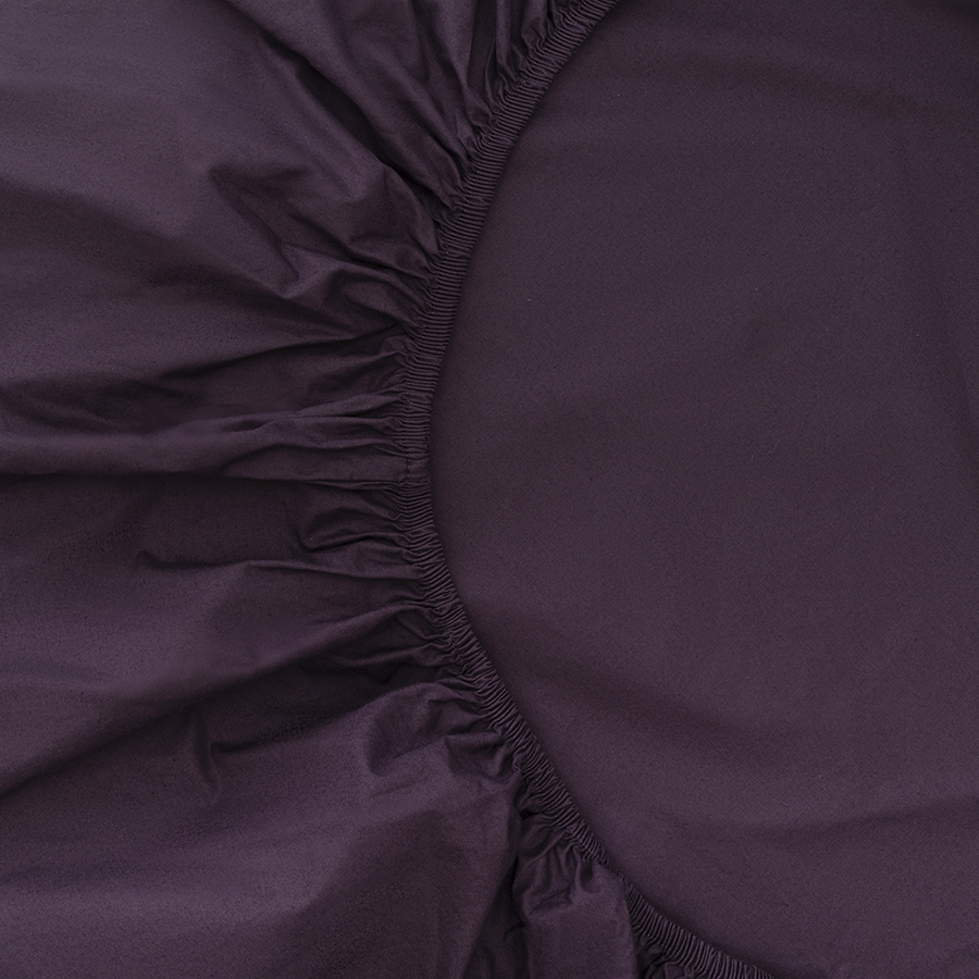 Простыня на резинке из стираного перкаля сливового цвета из коллекции Essential, 200х200х30 см, Tkano