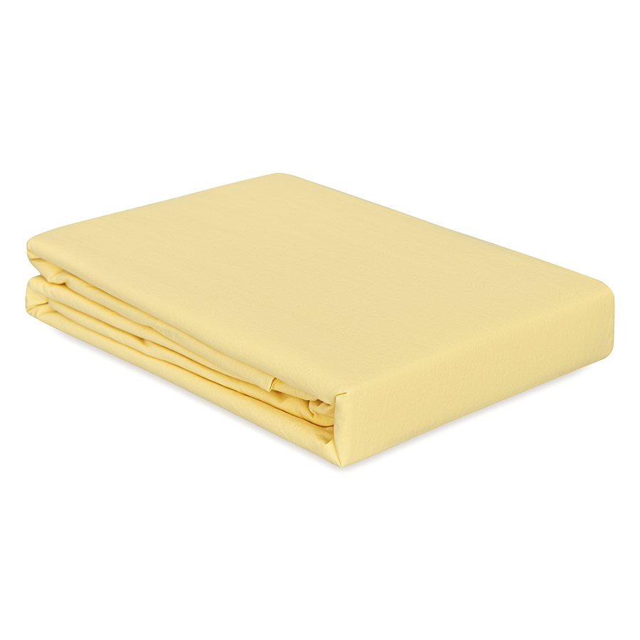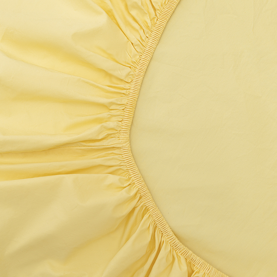 Простыня на резинке из стираного перкаля светло-желтого цвета из коллекции Essential, 180х200х30 см, Tkano