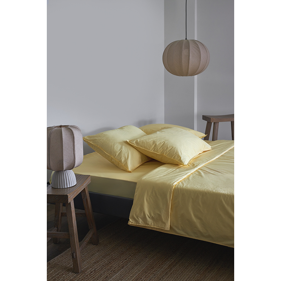 "Постельное белье из коллекции Essential позволяет погрузиться в мир гармонии и уюта. Простыня на резинке из стираного перкаля светло-желтого цвета дарит приятные тактильные ощущения, радуя своим премиальным качеством. Мягкая фактура, натуральный состав и дышащие свойства материала создают идеальные условия для комфортного отдыха и сна.