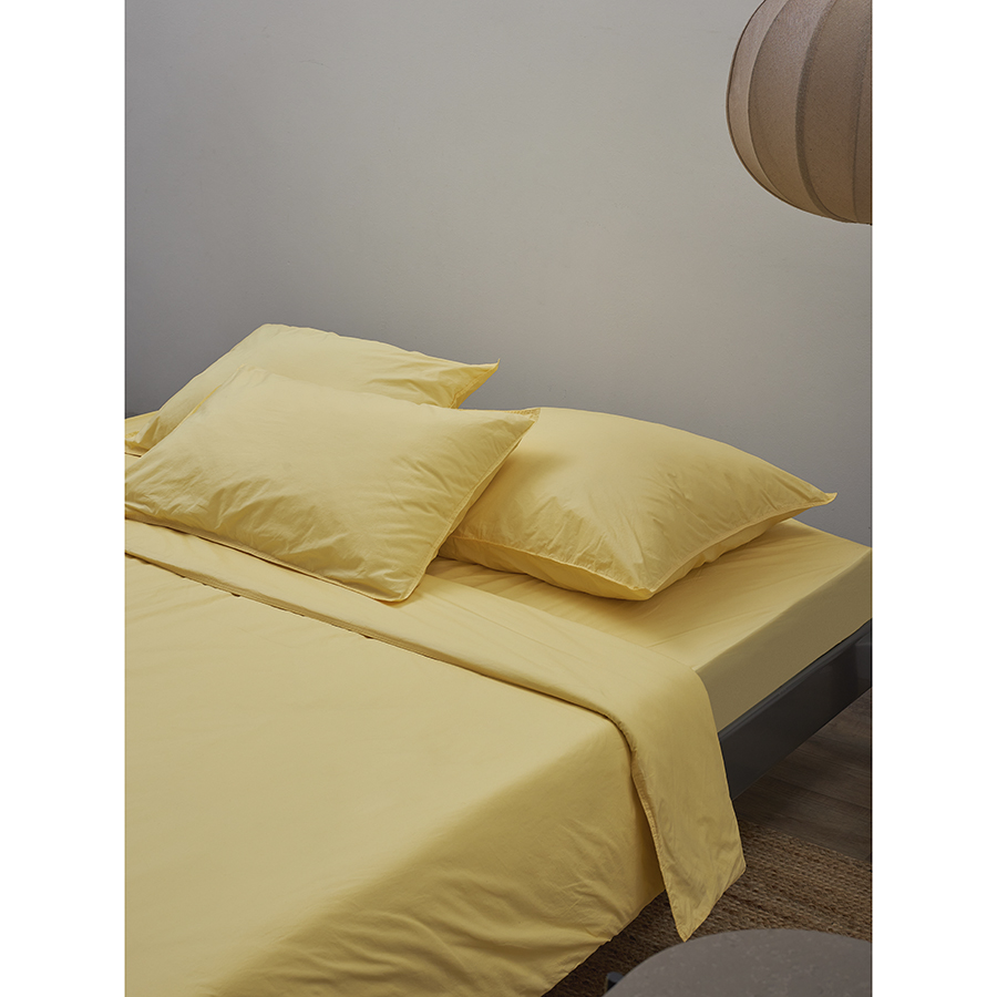 "Постельное белье из коллекции Essential позволяет погрузиться в мир гармонии и уюта. Простыня на резинке из стираного перкаля светло-желтого цвета дарит приятные тактильные ощущения, радуя своим премиальным качеством. Мягкая фактура, натуральный состав и дышащие свойства материала создают идеальные условия для комфортного отдыха и сна.