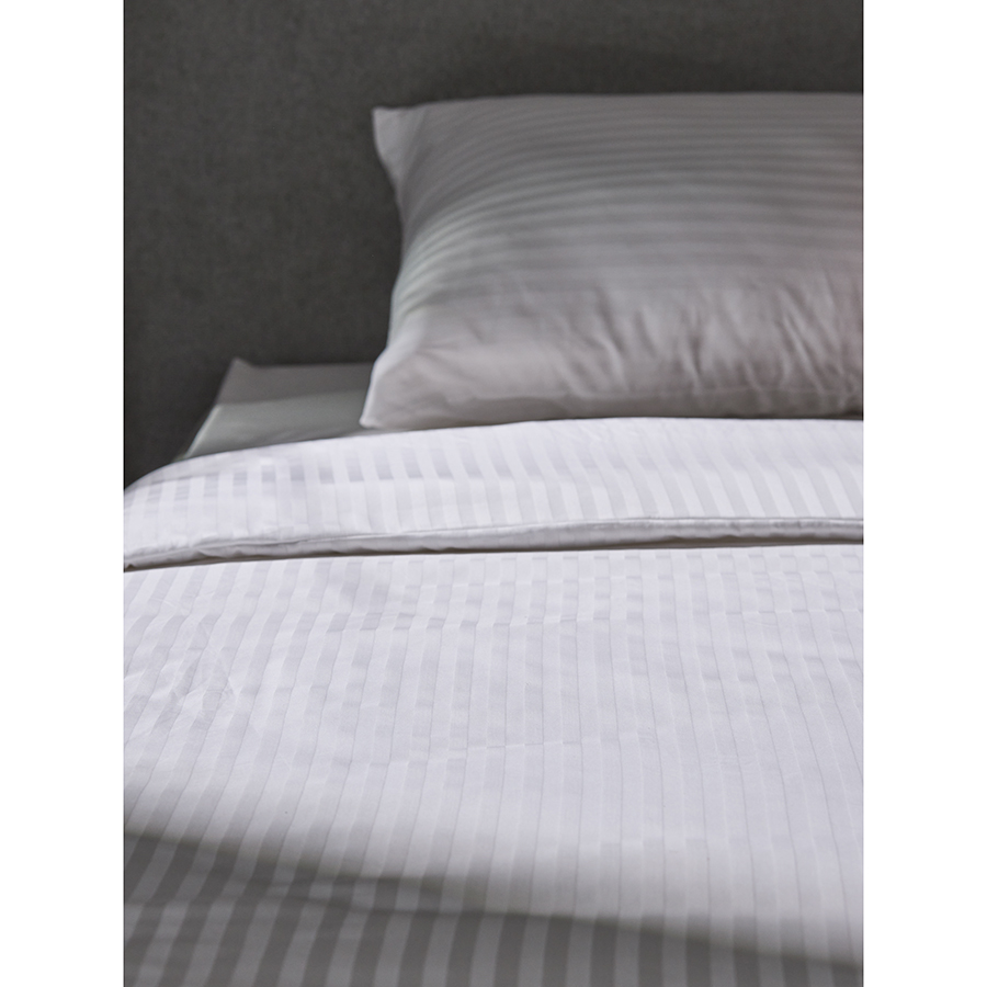 "Простыня на резинке из страйп-сатина из коллекции Essential – постельное белье премиального качества, которое сделает любую спальню более комфортной и изысканной.