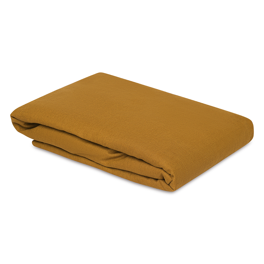 Простыня на резинке изо льна и хлопка цвета карри из коллекции Essential, 160х200х30 см, Tkano
