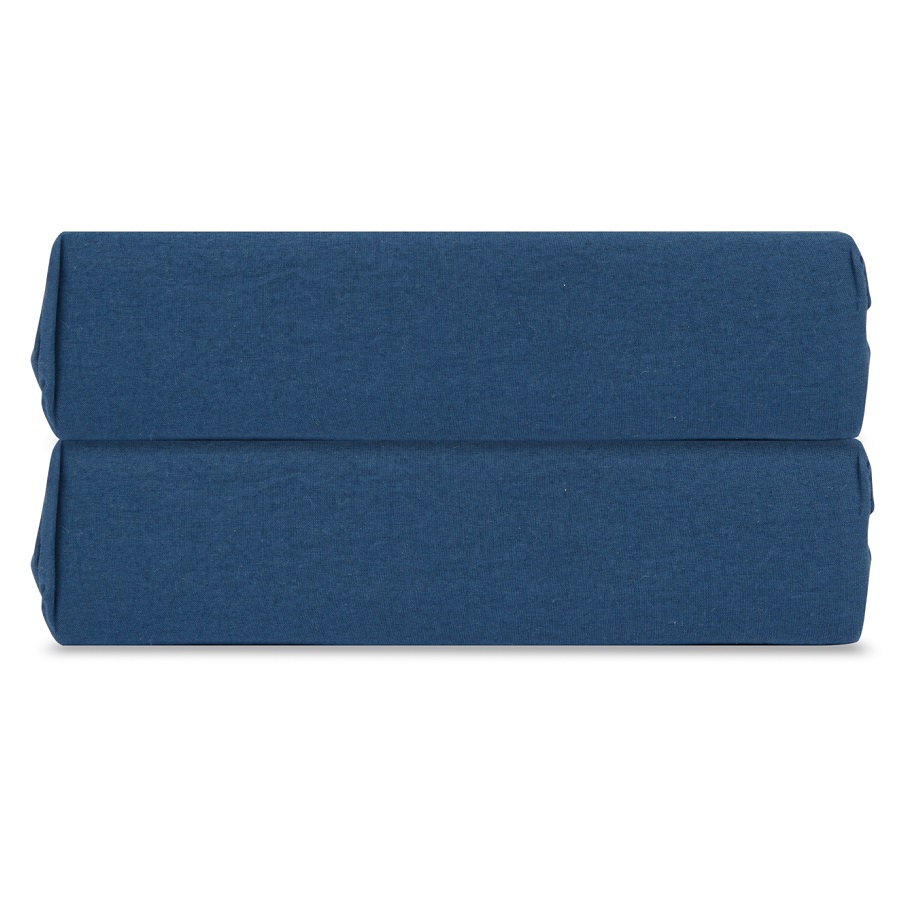 Простыня на резинке темно-синего цвета из органического стираного хлопка из коллекции Essential, 180х200 см