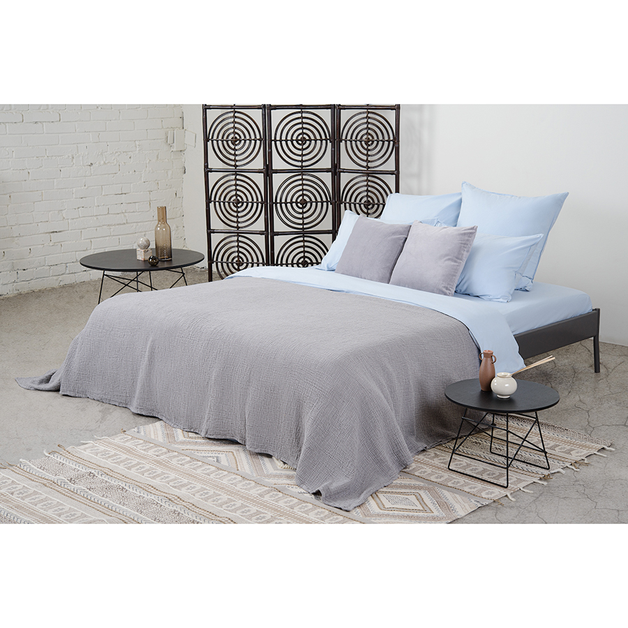 Простыня небесно-голубого цвета из органического стираного хлопка из коллекции Essential, 240х270 см