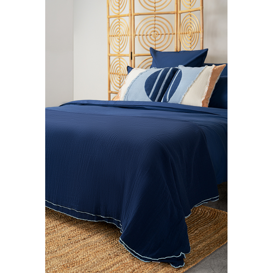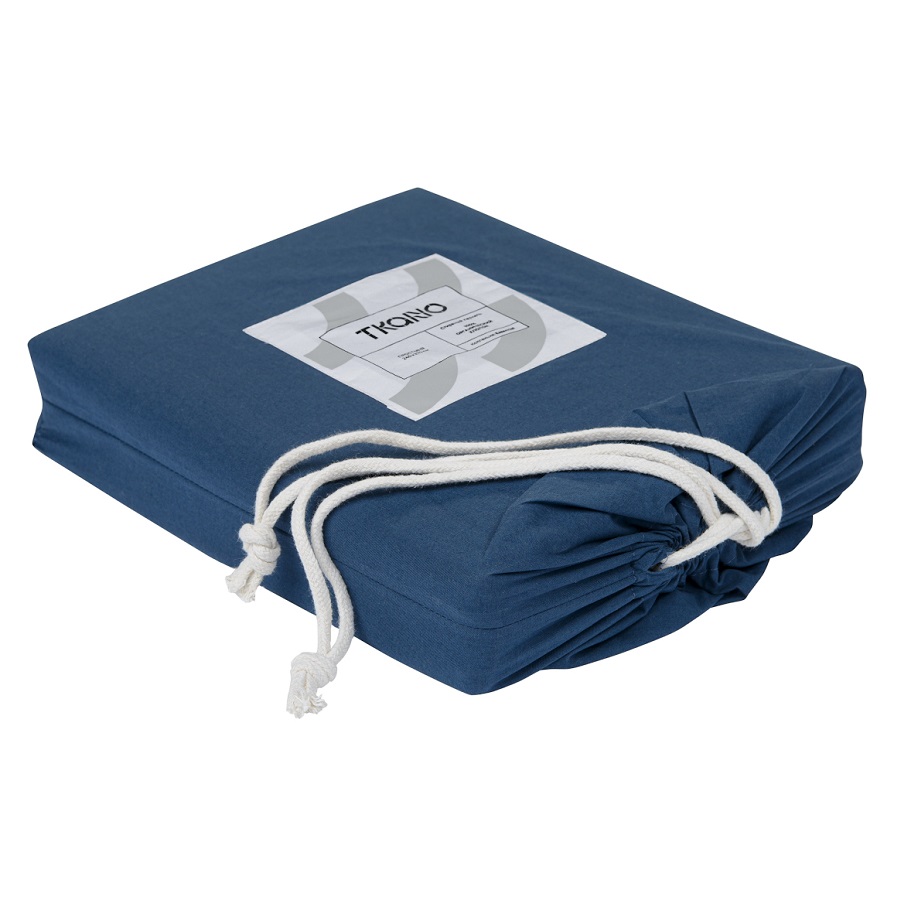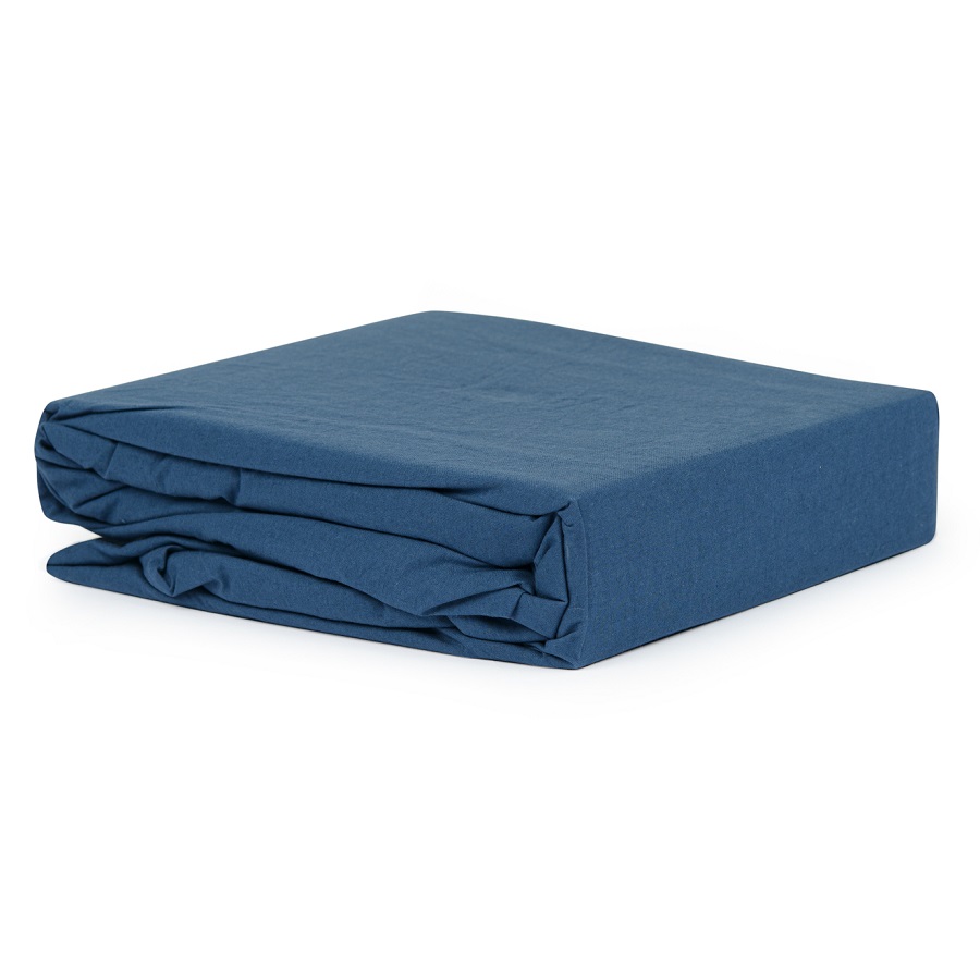 Простыня темно-синего цвета из органического стираного хлопка из коллекции Essential, 180х270 см