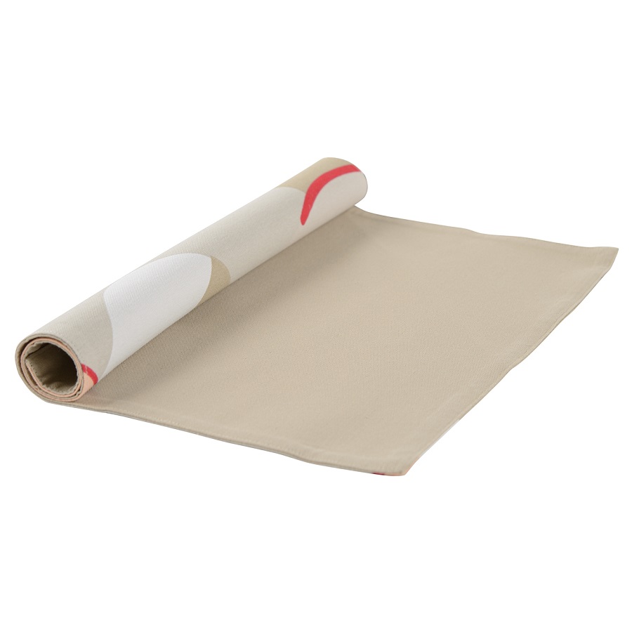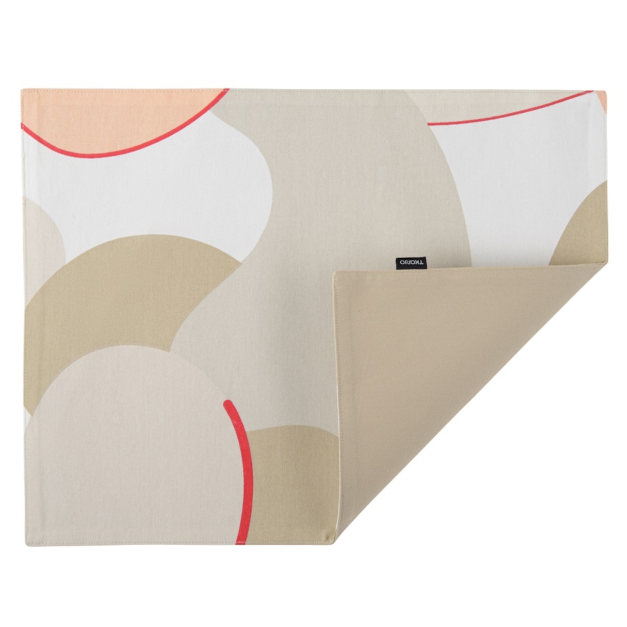 "Двухсторонняя салфетка под приборы бежевого цвета с авторским принтом из коллекции Freak Fruit станет украшением праздничного и повседневного стола. Абстрактный принт не имеет повторяющегося раппорта и представляет собой единую законченную картину.