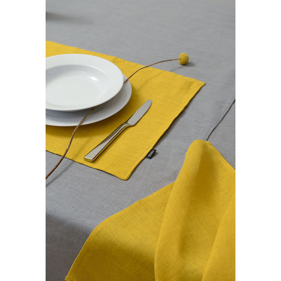 Салфетка под приборы из стираного льна горчичного цвета из коллекции Essential, 35х45 см
