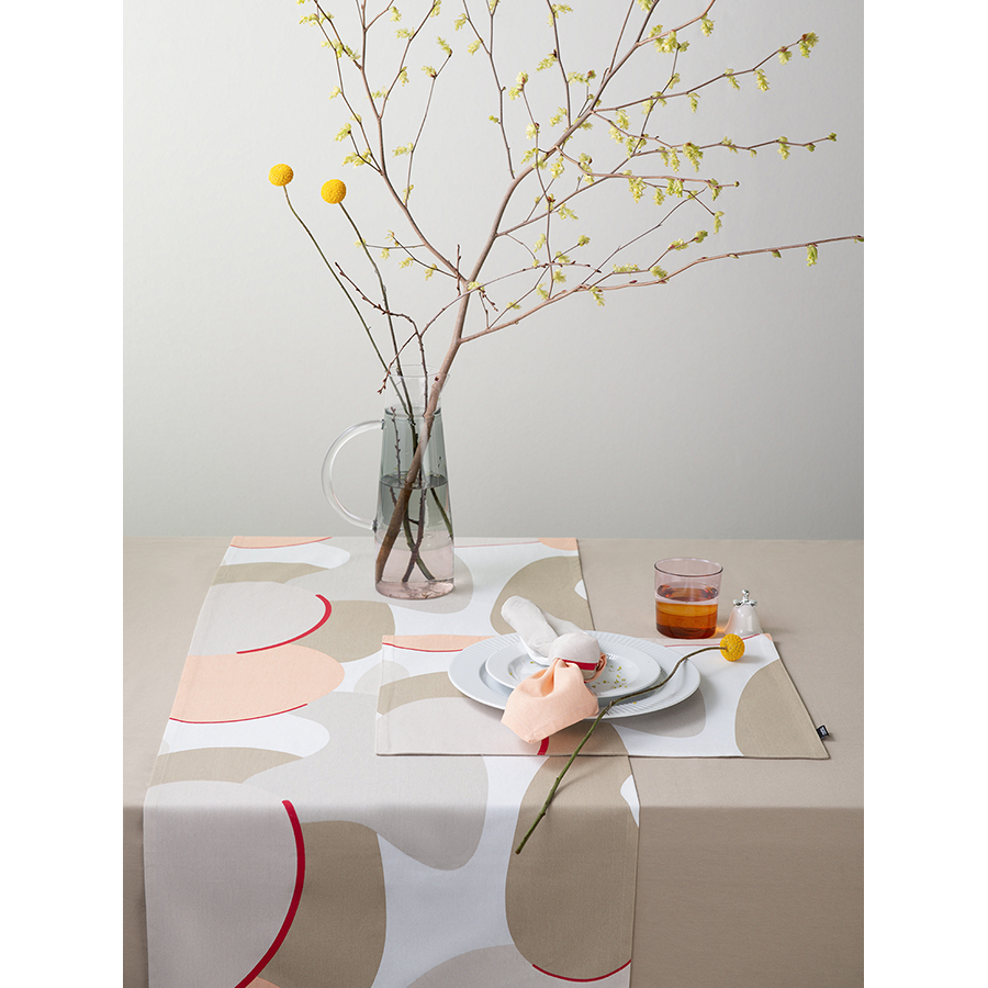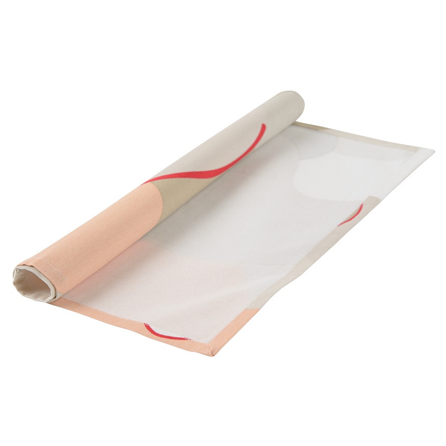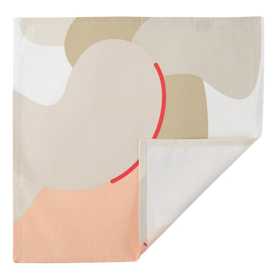 "Салфетка сервировочная из хлопка бежевого цвета с авторским принтом из коллекции Freak Fruit дополнит праздничную или повседневную сервировку и гармонично впишется в любой современный стиль. Абстрактный принт не имеет повторяющегося раппорта и представляет собой единую законченную картину.