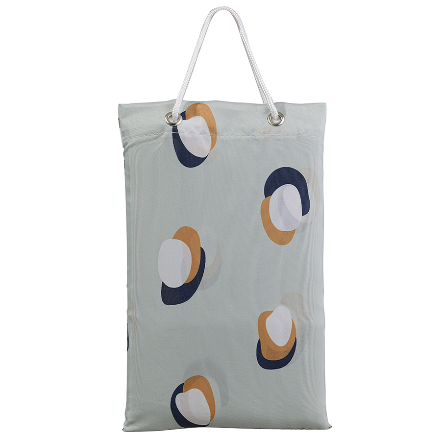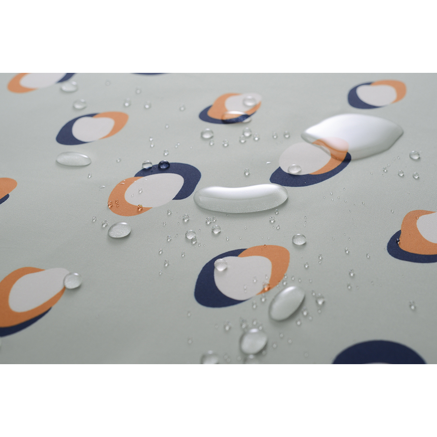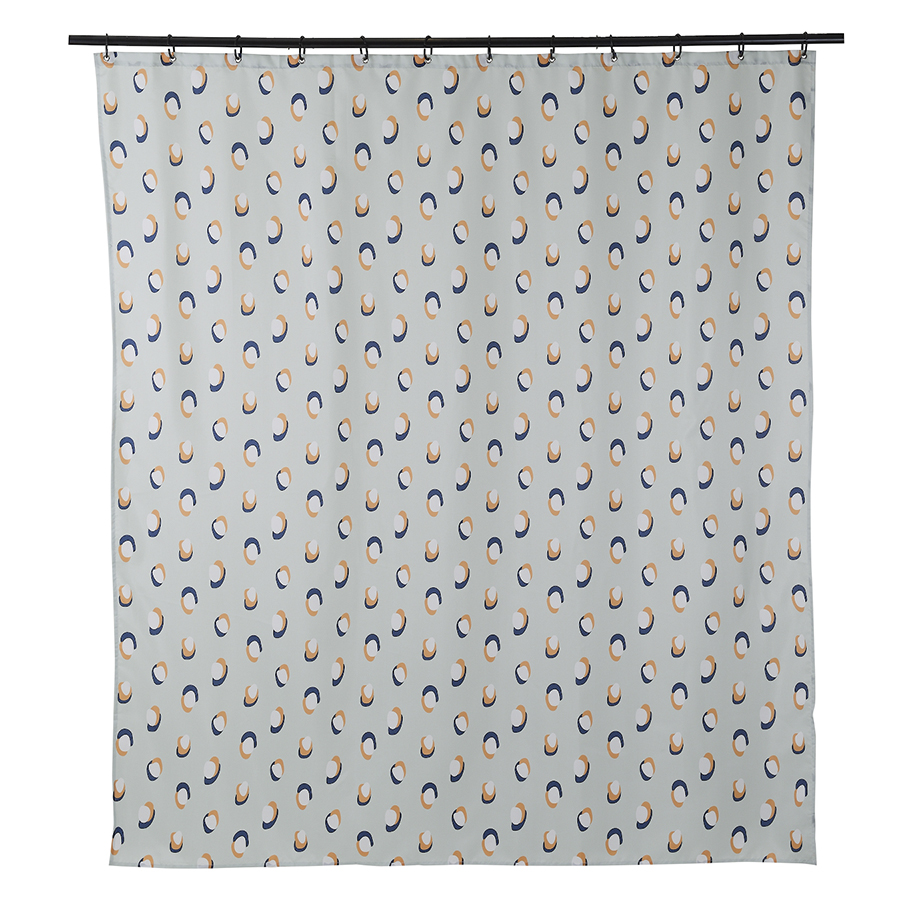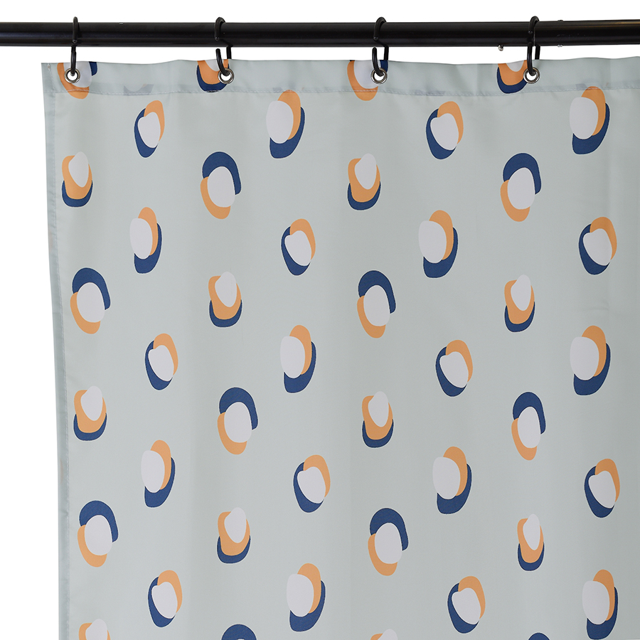 Изделие выполнено из полиэстера с водоотталкивающей пропиткой, поэтому хорошо защищает от брызг. Штора поставляется в стильной упаковке-сумочке с таким же принтом. Кольца для шторы не входят в комплект. Плотность ткани - 90GSM.