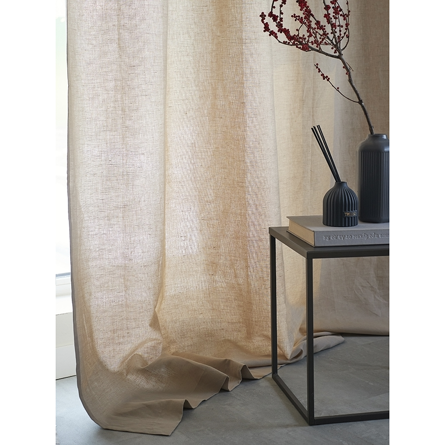 "Штора из хлопка и льна бежево-серого цвета из коллекции Essential – прекрасный вариант для поклонников современных интерьеров, в которых предпочтение отдается натуральным материалам и естественным оттенкам.