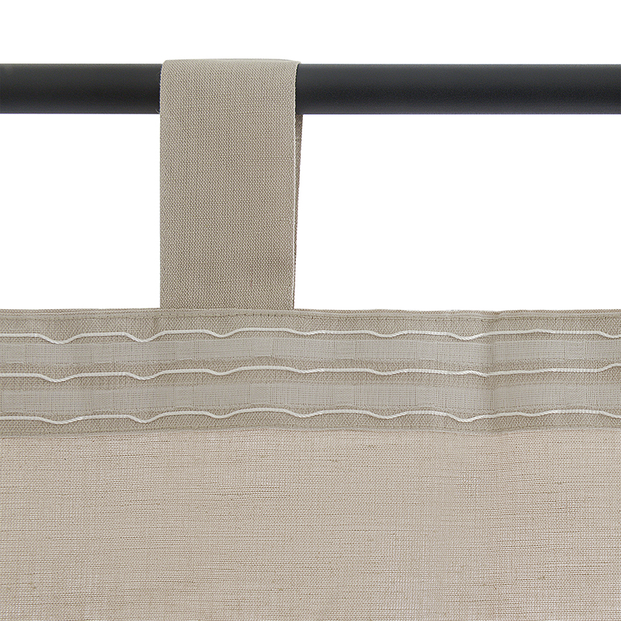 - По верхнему краю шторы предусмотрена лента с петельками для крепления на крючки и текстильные петли, которые позволяют легко разместить ее на карнизе без использования дополнительного крепежа.