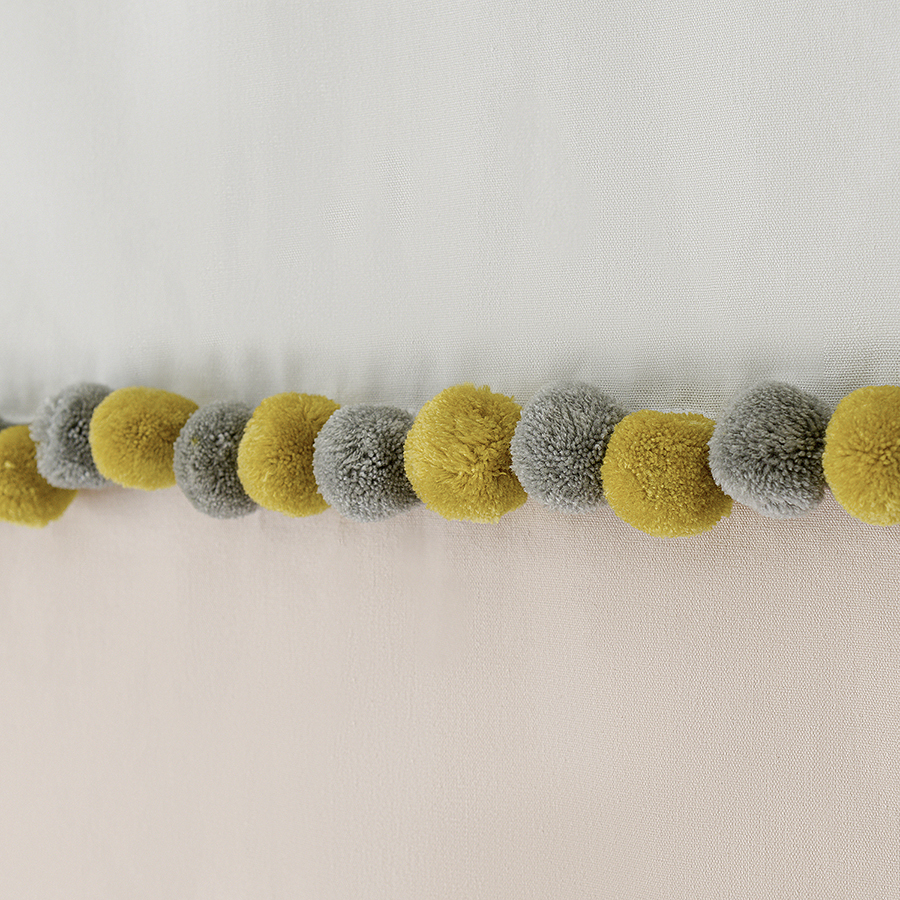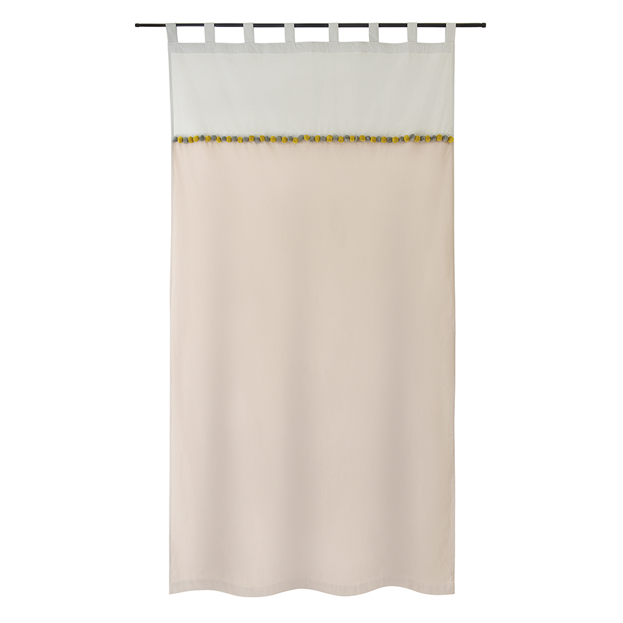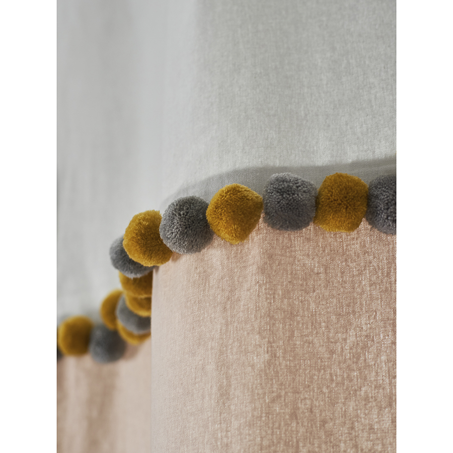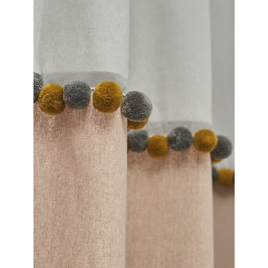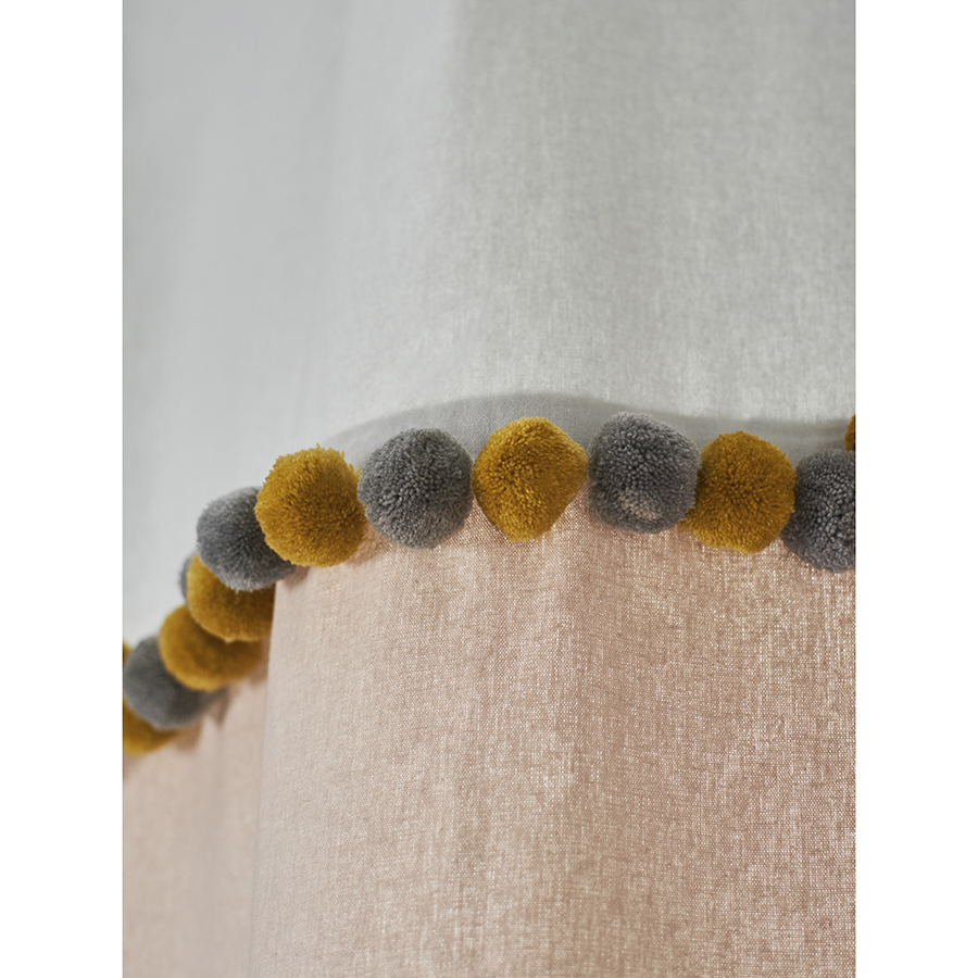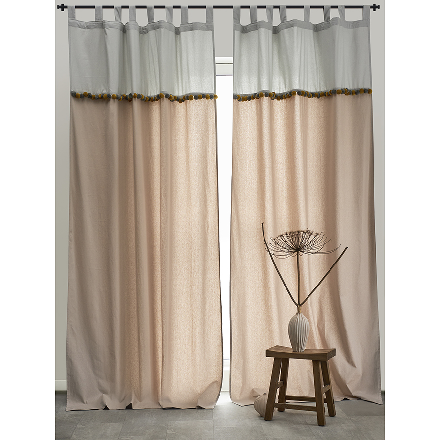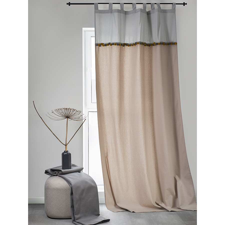 "Штора из хлопка с помпонами бежево-серого цвета из коллекции Essential поможет выразить собственный стиль в декоре, освежить интерьер и создать в помещении легкую, непринужденную атмосферу.