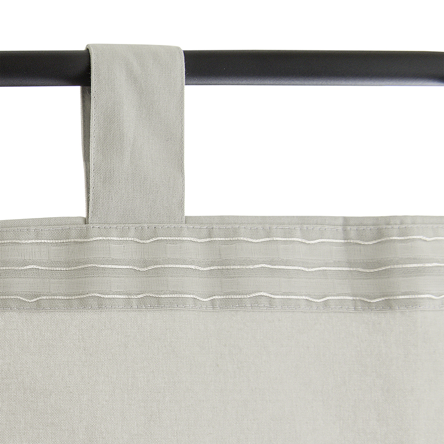 - По верхнему краю шторы предусмотрена лента с петельками для крепления на крючки и текстильные петли, которые позволяют легко разместить ее на карнизе без использования дополнительного крепежа.