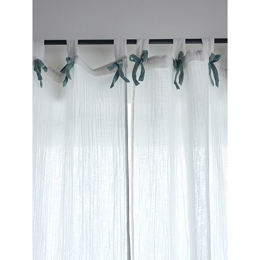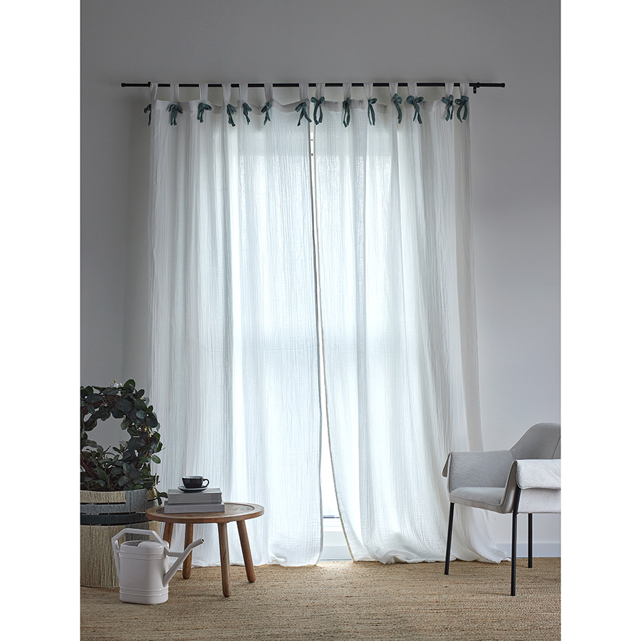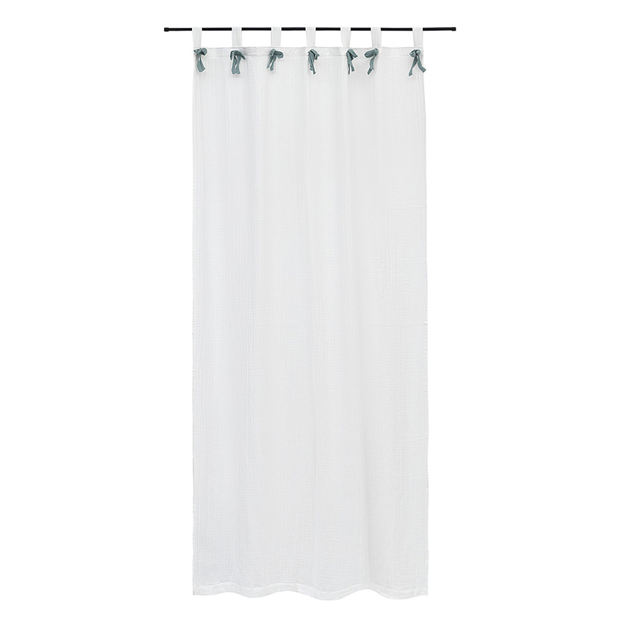 "Штора из муслина с декором синего цвета из коллекции Essential поможет в создании уютного интерьера и благодаря нейтральной цветовой гамме станет прекрасным фоном для самых смелых дизайнерских решений. Такие занавески идеально подходят для украшения окон в спальне и гостиной – материал хорошо пропускает свет, при этом защищает от прямых солнечных лучей, обеспечивая в комнате комфортную атмосферу.