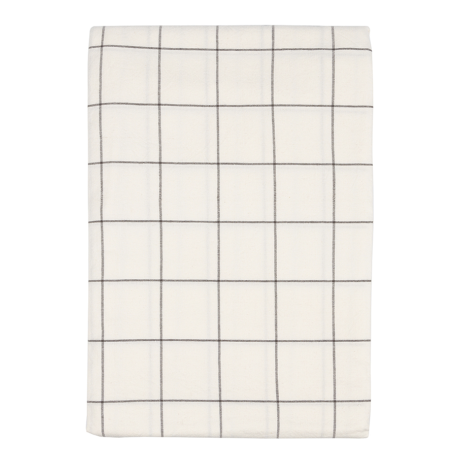 "Скатерть из хлопка белого цвета в клетку из коллекции Essential украсит любую сервировку. Нейтральная черно-белая клетка позволяет легко сочетать изделие с другим столовым текстилем и посудой. Модель выполнена из прочного, экологически чистого хлопка. Износостойкий материал не деформируется после множества стирок.
