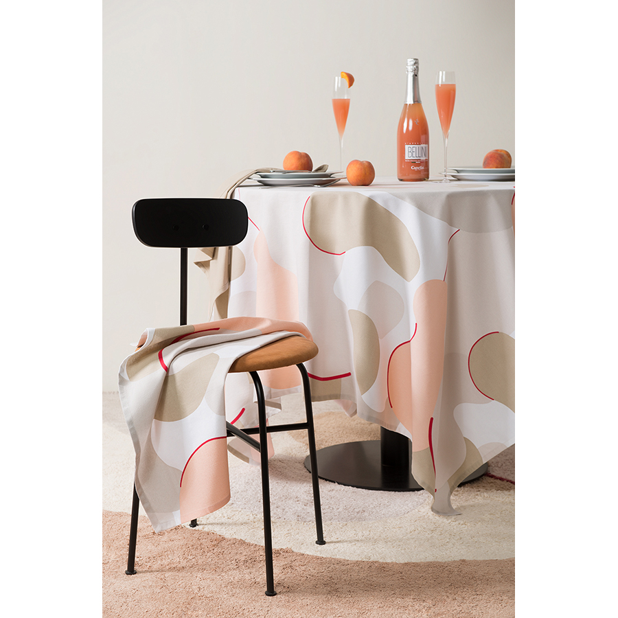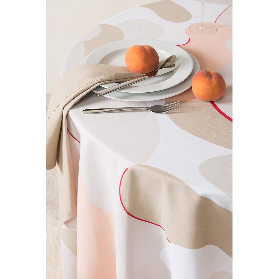 "Скатерть из хлопка бежевого цвета с авторским принтом из коллекции Freak Fruit станет центральным элементом сервировки стола. Абстрактный принт не имеет повторяющегося раппорта и представляет собой единую законченную картину.