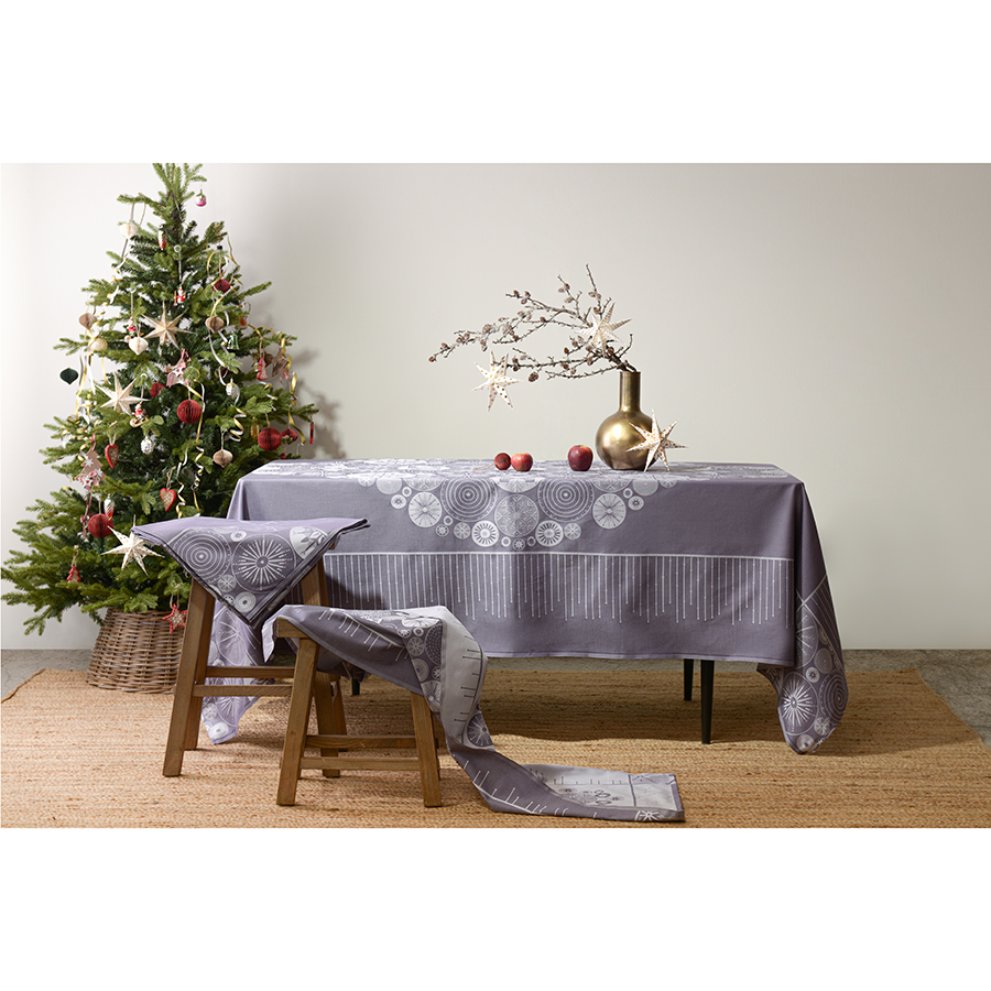 Скатерть из хлопка фиолетово-серого цвета с рисунком Ледяные узоры, New Year Essential, 180х180см