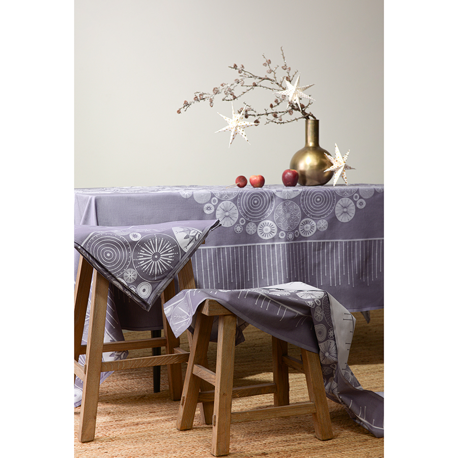 Скатерть из хлопка фиолетово-серого цвета с рисунком Ледяные узоры, New Year Essential, 180х260см