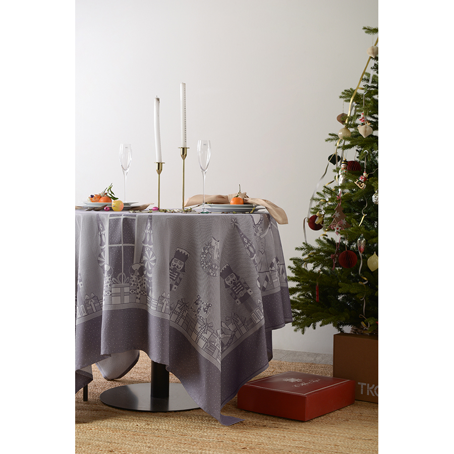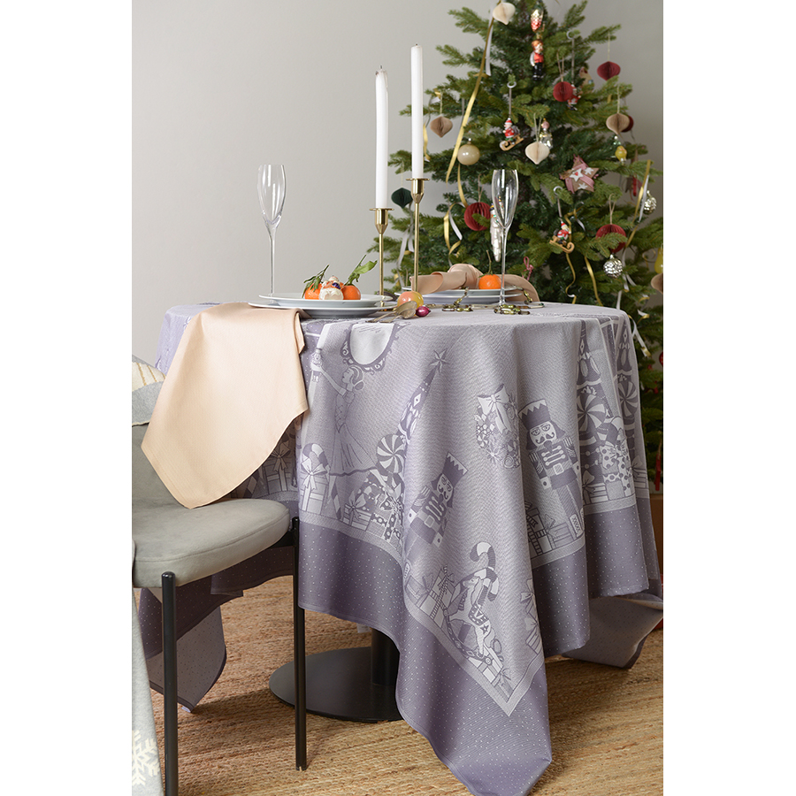 Скатерть из хлопка фиолетово-серого цвета с рисунком Щелкунчик, New Year Essential, 180х180см