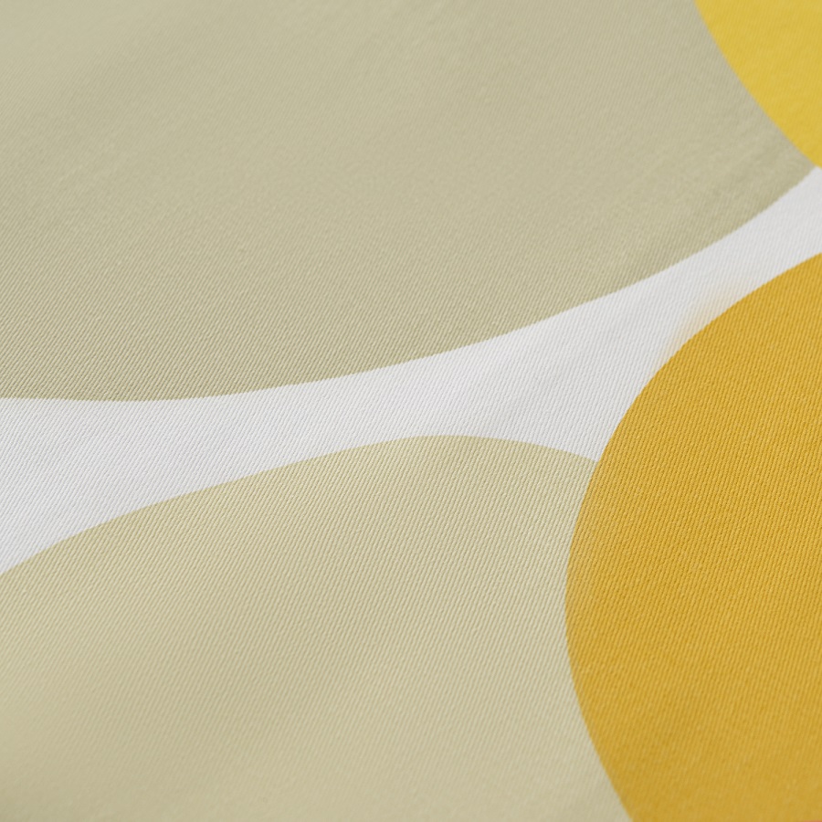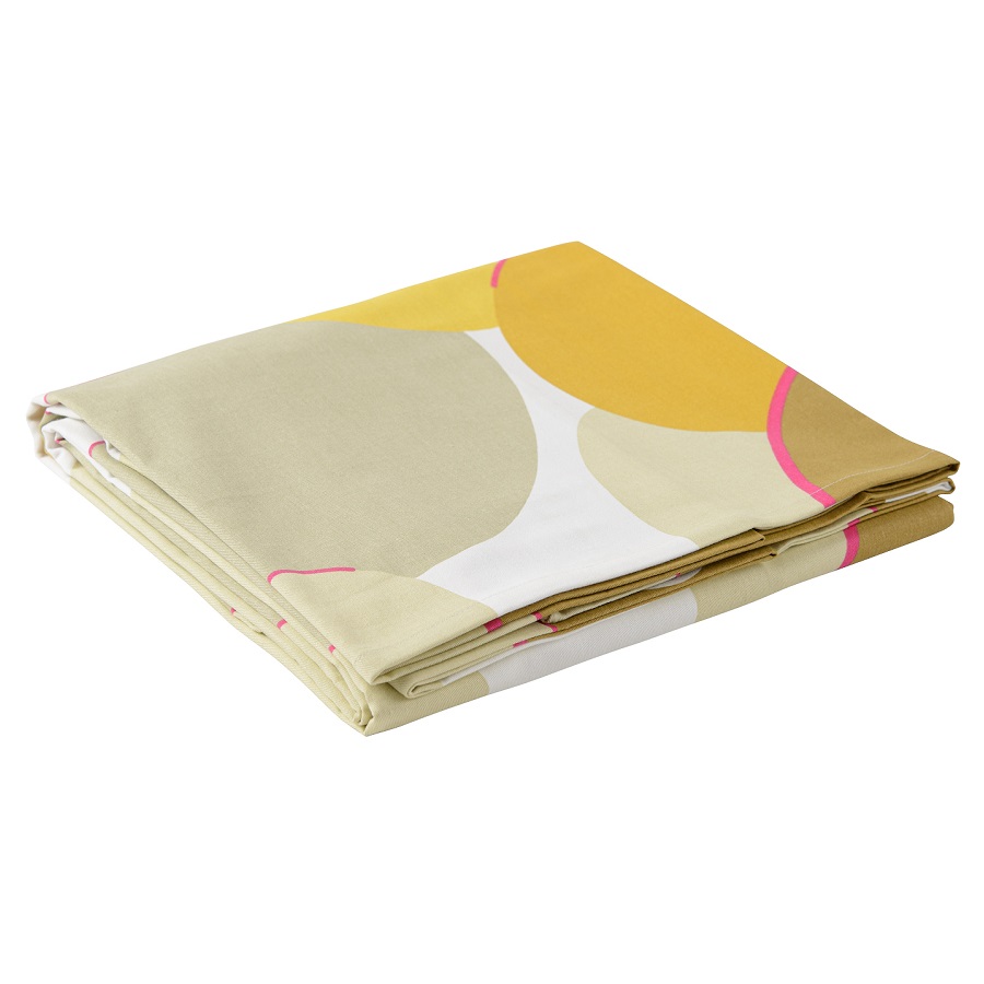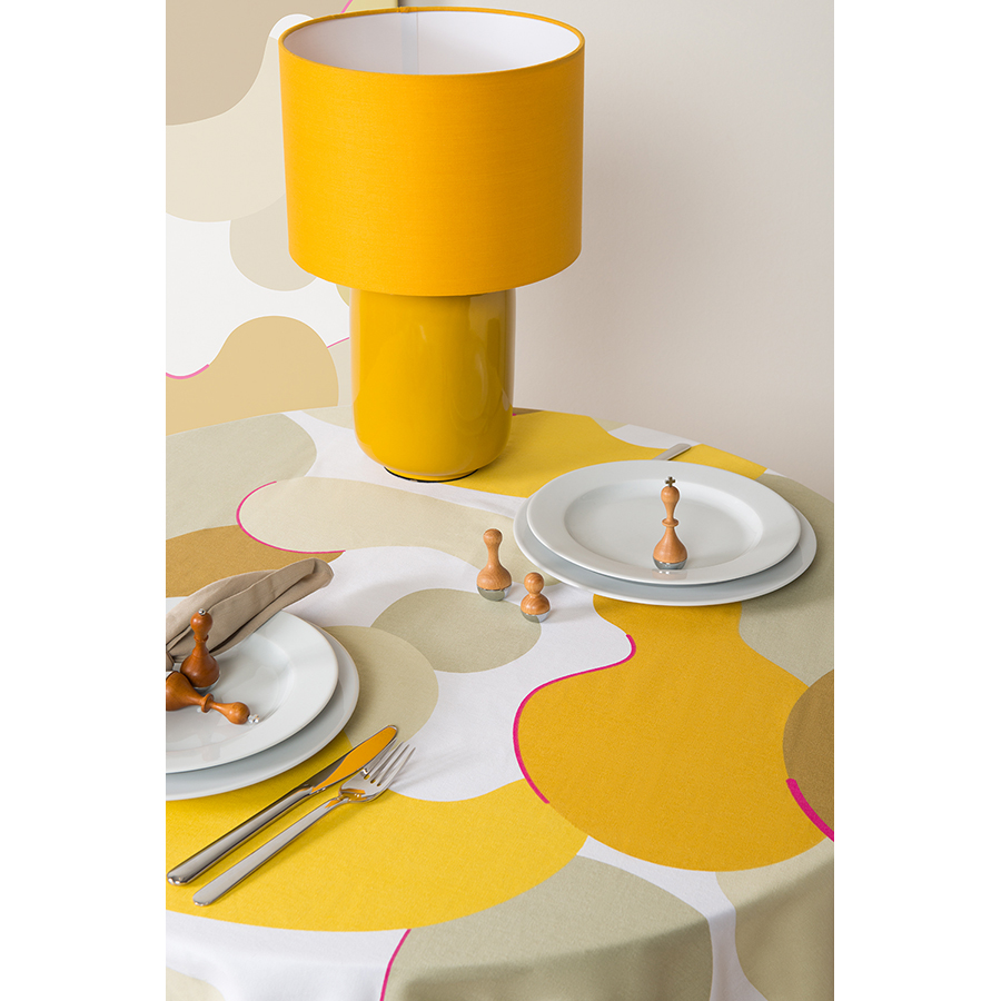 "Скатерть из хлопка горчичного цвета с авторским принтом из коллекции Freak Fruit станет центральным элементом сервировки стола. Абстрактный принт не имеет повторяющегося раппорта и представляет собой единую законченную картину.