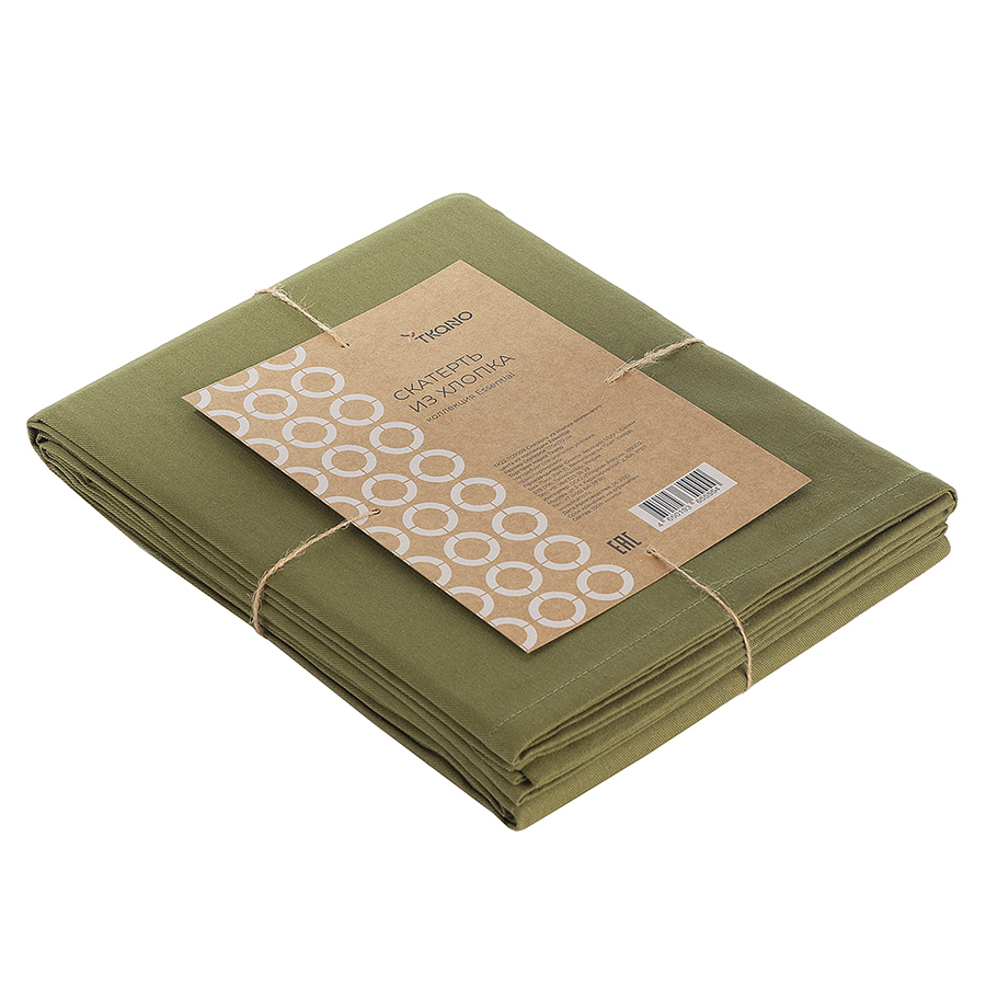 "Скатерть из хлопка оливкового цвета из коллекции Essential станет центральным элементом сервировки стола. Модель выполнена из прочного, экологически чистого хлопка. Износостойкий материал не деформируется после множества стирок. Однотонное изделие органично впишется в любой современный стиль.