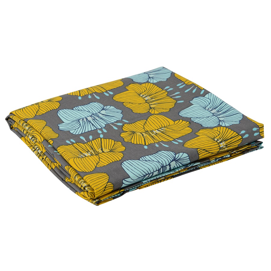 "Скатерть из хлопка серого цвета с принтом Цветы из коллекции Prairie станет центральным элементом сервировки стола. Модель выполнена из прочного, экологически чистого хлопка. Дизайн с крупными цветами станет , ,ярким акцентом и гармонично впишется в любой современный стиль. Износостойкий материал хорошо впитывает влагу и не деформируется даже после множества стирок. Тип плетения: твил. Плотность ткани - 215GSM.