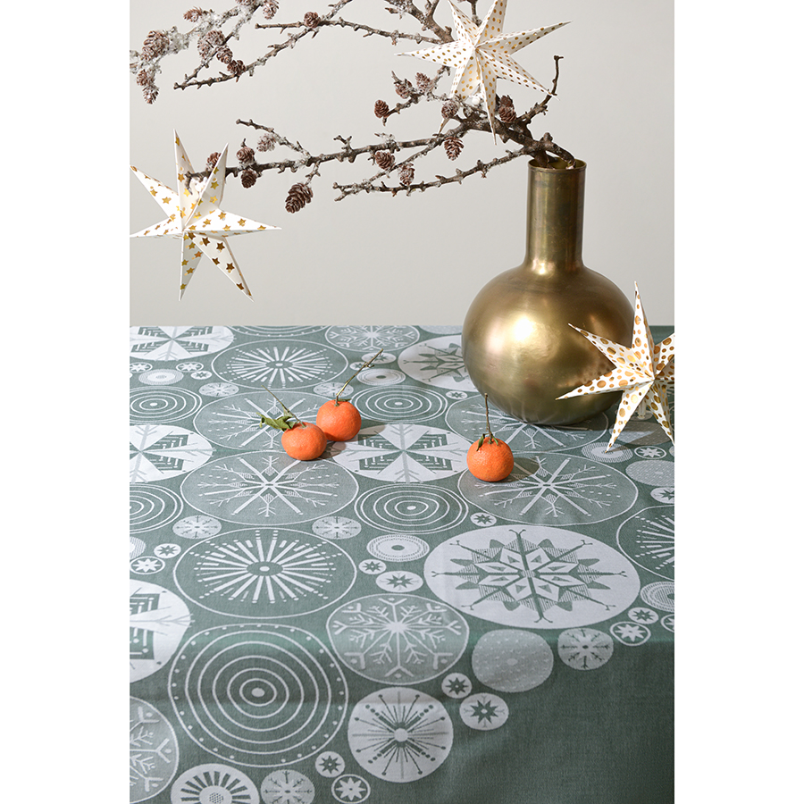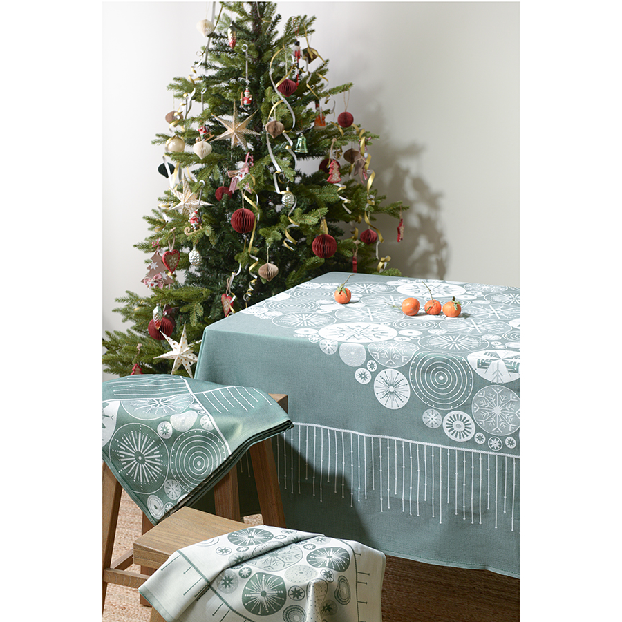 Скатерть из хлопка зеленого цвета с рисунком Ледяные узоры из коллекции New Year Essential, 180х260см