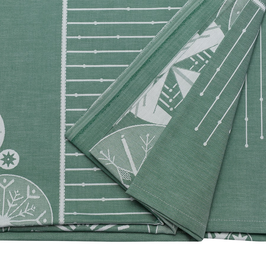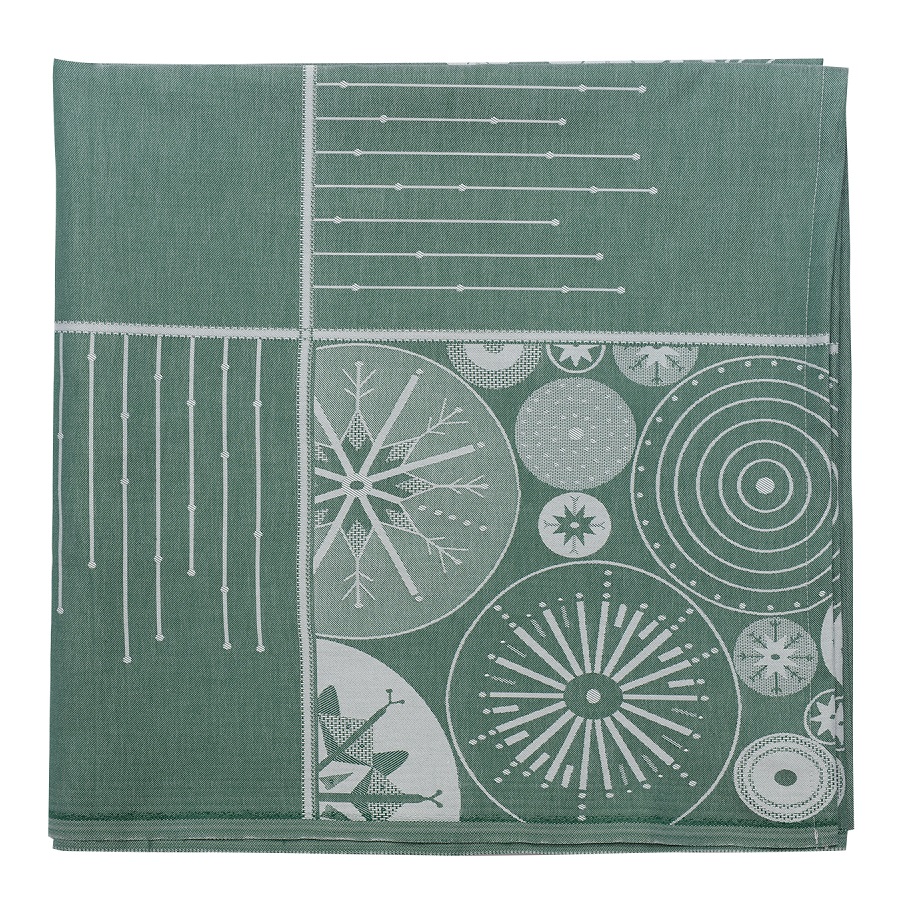 "Скатерть из хлопка зеленого цвета с жаккардовым рисунком Ледяные узоры из коллекции New Year Essential украсит праздничный новогодний стол и внесет разнообразие в повседневную зимнюю сервировку. Изделие в оригинальном дизайне органично впишется в любой современный интерьер. Модель выполнена из плотного хлопка - прочного материала, который хорошо впитывает влагу и не деформируется после множества стирок.