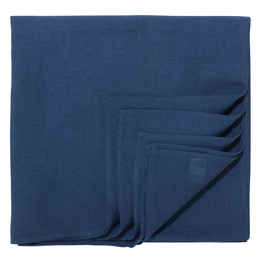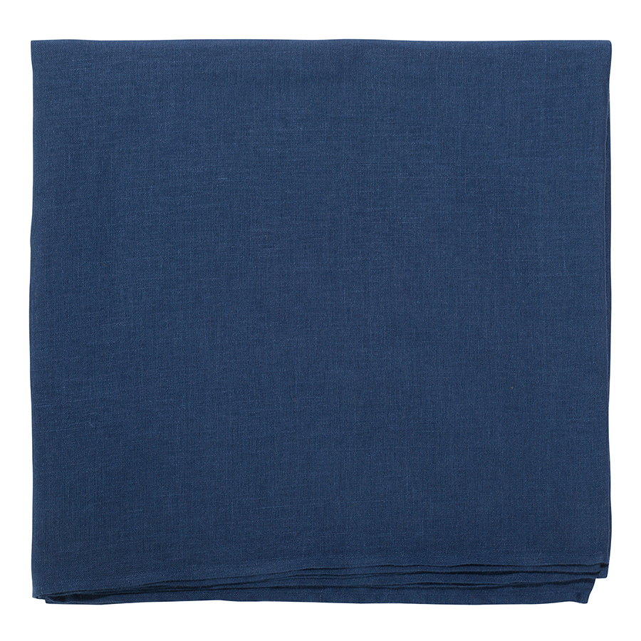 "Скатерть из стираного льна синего цвета из коллекции Essential украсит любой стол. Однотонное изделие подчеркнет сервировку и органично впишется в современный интерьер кухни. 100%, натуральный лен специально выстирывается для размягчения волокон. , ,Ткань обладает интересной фактурой, отлично впитывает влагу и быстро сохнет. Льняная скатерть отличается износостойкостью, проста в уходе и долгое время сохраняет презентабельный вид.