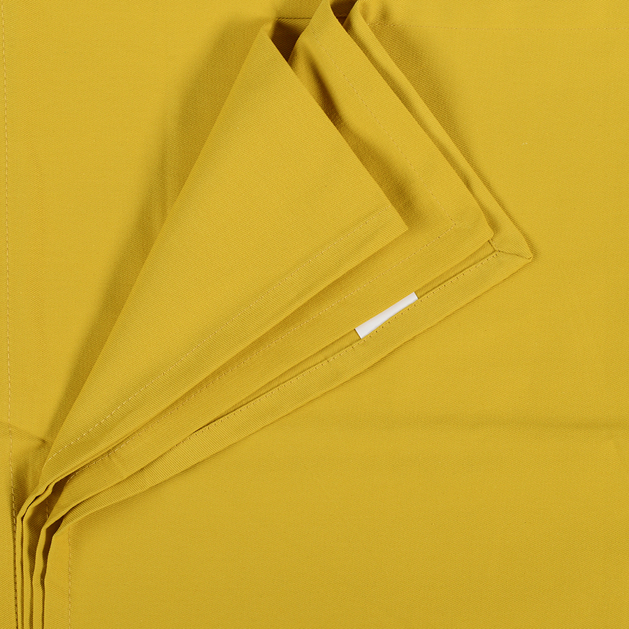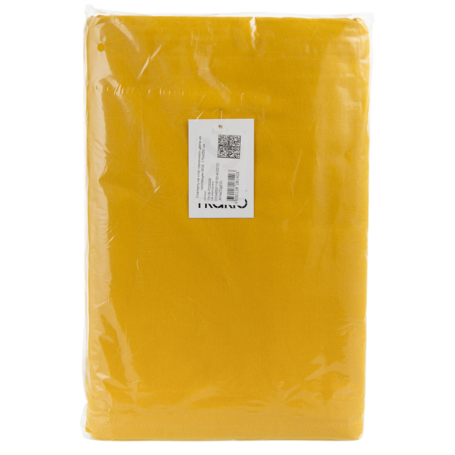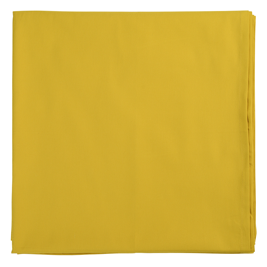 "Скатерть на стол представлена в насыщенном горчичном оттенке. Модель выполнена из плотного прочного хлопка. Приятный на ощупь материал не вызывает аллергических реакций, и на нем не образуются катышки.Тип плетения: твил. Плотность ткани - 215GSM.