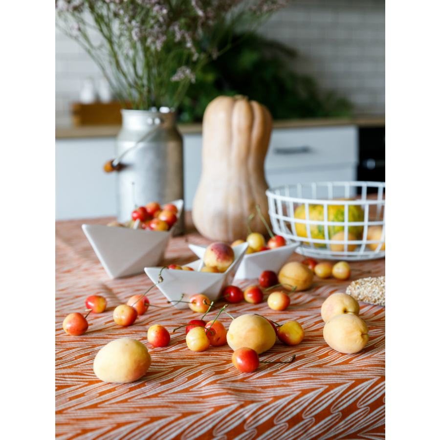 "Скатерть на стол из хлопка с графичным принтом «Колосья» – изысканное и практичное украшение праздничного стола. За счет элегантного дизайна изделие органично впишется в любой современный интерьер. Материал – экологически чистый хлопок. Оформление проработано таким образом, чтобы максимально сохранить природные мотивы в узоре и натуральные цвета. Изделие органично впишется как в классический, так и в современные скандинавские интерьерные стили и минимализм.Тип плетения: кулирка. Плотность ткани - 290GSM.
