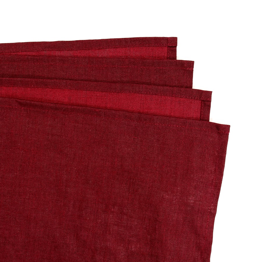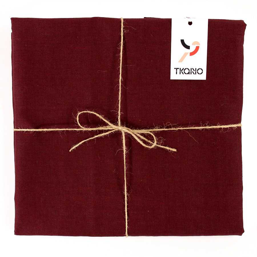 Скатерть на стол из умягченного льна с декоративной обработкой бордового цвета Essential, 143х250 см