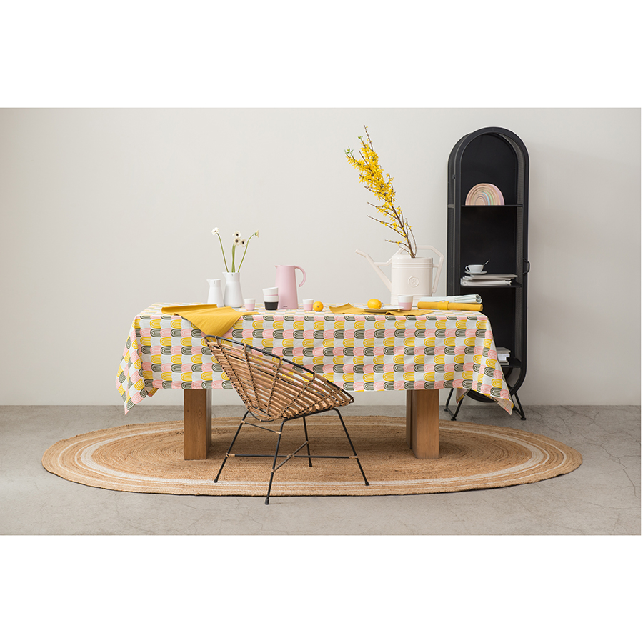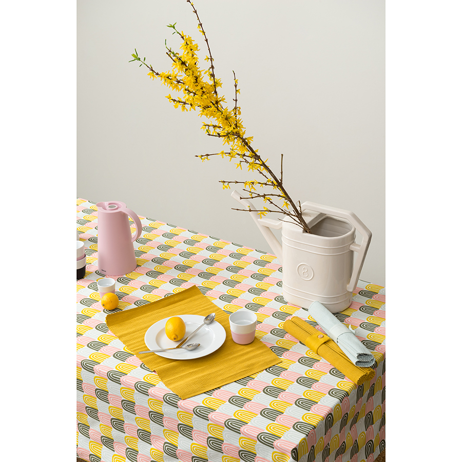 "Скатерть на стол декорировали колоритным принтом Passion Arch с тропическими мотивами. Модель выполнена из плотного прочного хлопка. Приятный на ощупь материал не вызывает аллергических реакций, и на нем не образуются катышки.Тип плетения: твил. Плотность ткани - 215GSM.