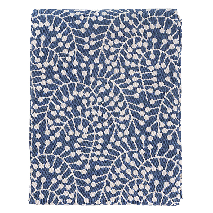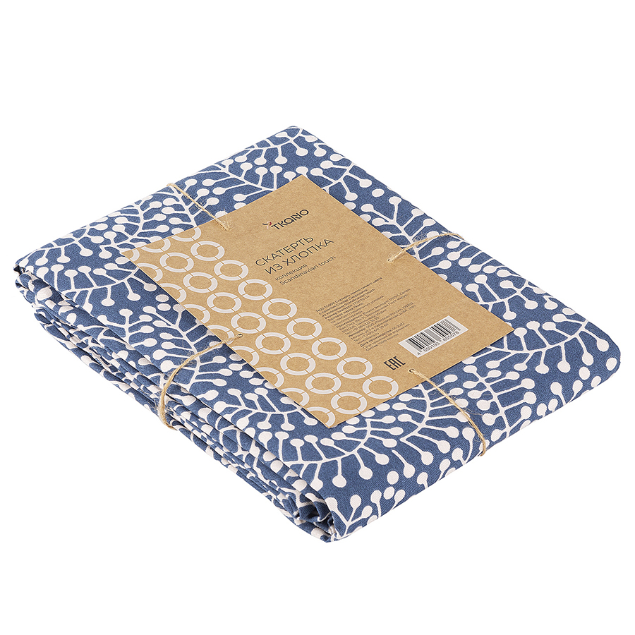 "Скатерть темно-синего цвета с принтом Спелая Смородина из коллекции Scandinavian touch внесет разнообразие в повседневную и неформальную праздничную сервировку. Изделие с авторским дизайном, разработанным одним из ведущих финских агентств, органично впишется в любой современный интерьер. Модель выполнена из плотного хлопка - прочного материала, который хорошо впитывает влагу и не деформируется после множества стирок.
