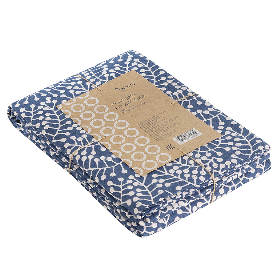 "Скатерть темно-синего цвета с принтом Спелая Смородина из коллекции Scandinavian touch внесет разнообразие в повседневную и неформальную праздничную сервировку. Изделие с авторским дизайном, разработанным одним из ведущих финских агентств, органично впишется в любой современный интерьер. Модель выполнена из плотного хлопка - прочного материала, который хорошо впитывает влагу и не деформируется после множества стирок.