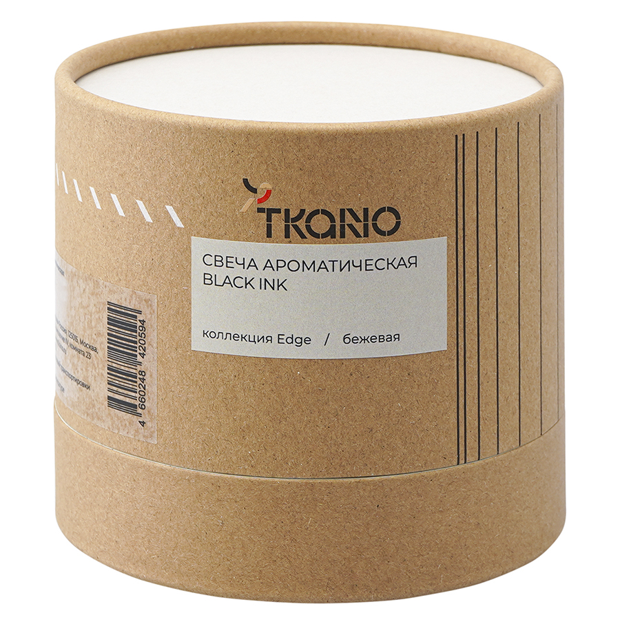 Свеча ароматическая с деревянным фитилём Black Ink из коллекции Edge, бежевый, 60 ч, Tkano