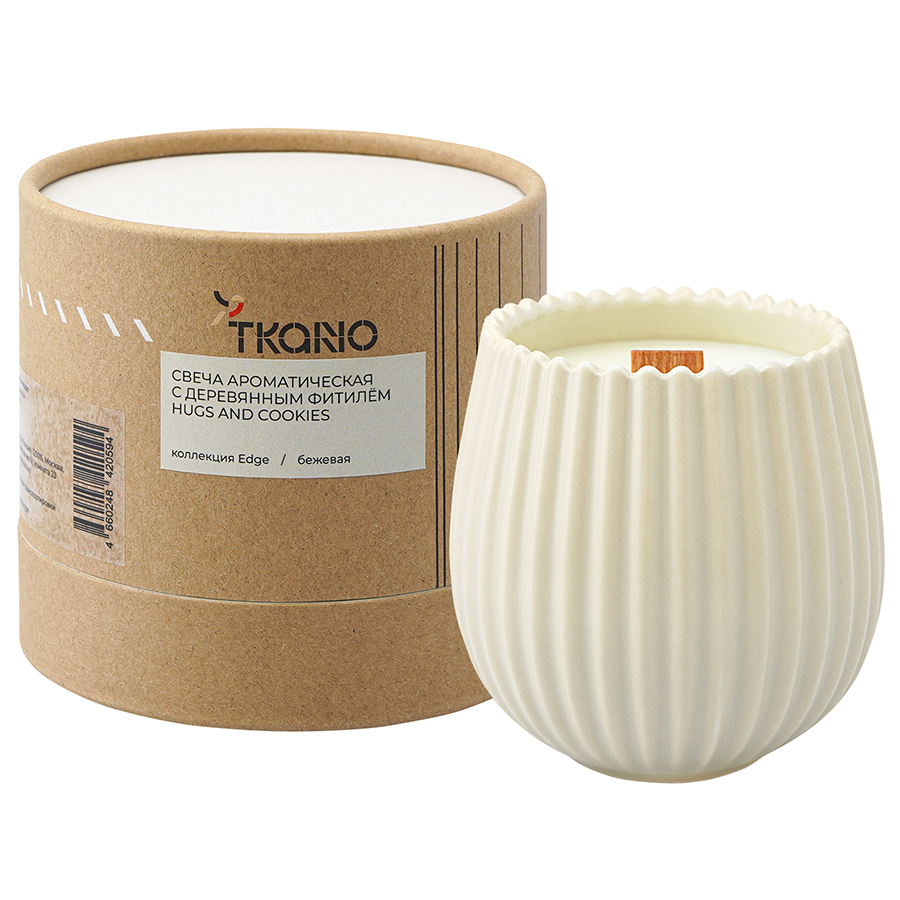 Свеча ароматическая с деревянным фитилём Hugs and Cookies из коллекции Edge, бежевый, 60 ч, Tkano