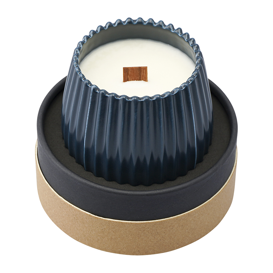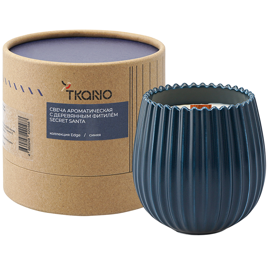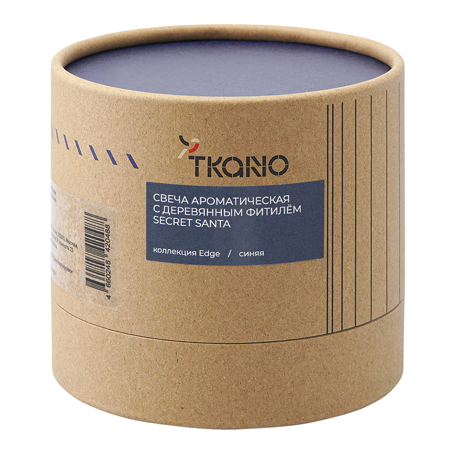 Свеча ароматическая с деревянным фитилём Secret Santa из коллекции Edge, синий, 60 ч, Tkano
